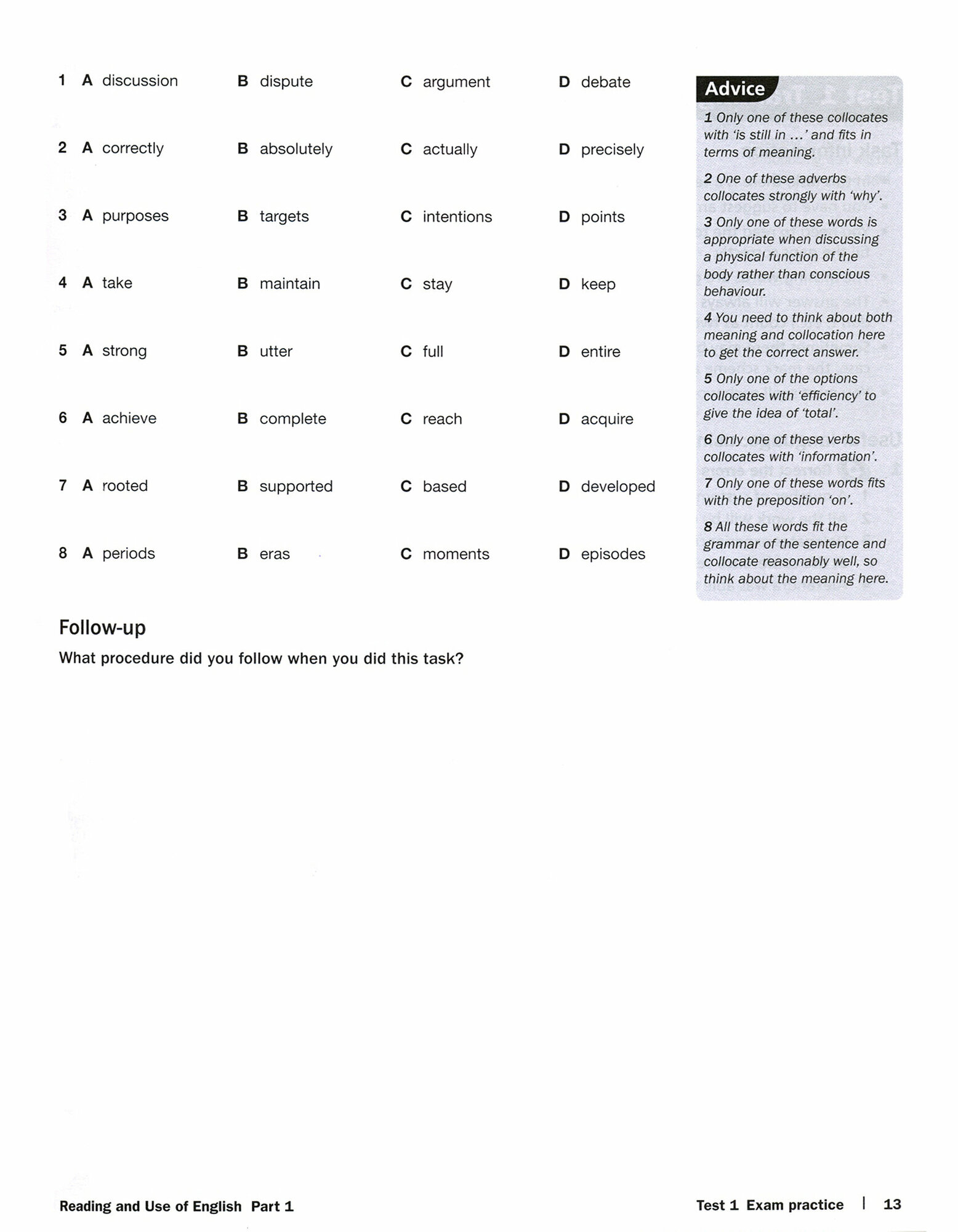 Six full practice tests with tips and training for the 2015 revised Cambridge English: Advanced (CAE). Advanced Trainer Second edition offers six practice tests for the revised Cambridge English: Advanced (CAE) exam combined with easy-to-follow guidance and exam tips. The first two tests are fully guided with advice on how to tackle each paper. Extra practice activities, informed by the Cambridge Learner Corpus, a bank of real candidates' exam papers, focus on areas where students typically need the most help. This version contains a full answer key. Audio for the listening and speaking test activities is available online for download.