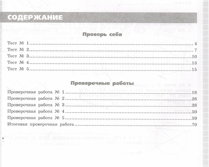 Пособие состоит из двух частей. Первая часть содержит тесты для самопроверки учащимися своих достижений и готовности к проверочной работе. Вторая часть содержит равноуровневые проверочные работы в четырёх вариантах по главам учебника и итоговую работу, также в четырёх вариантах.