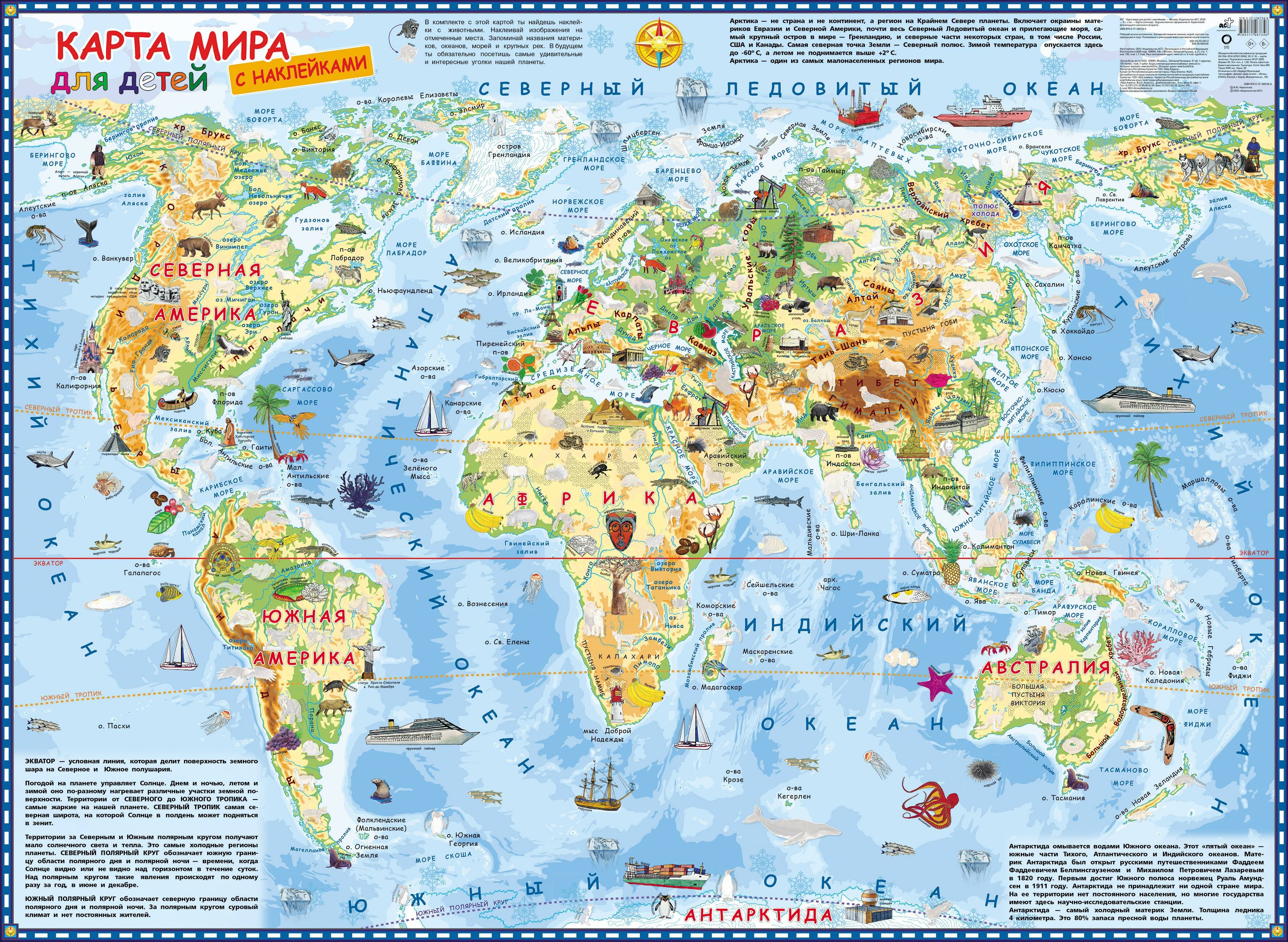 С этой картой в игровой форме ребенок узнает материки и океаны, моря и крупные реки, познакомится с уникальным животным миром нашей планеты. Формат карты позволяет увидеть весь мир, запомнить очертания и соотношение материков.