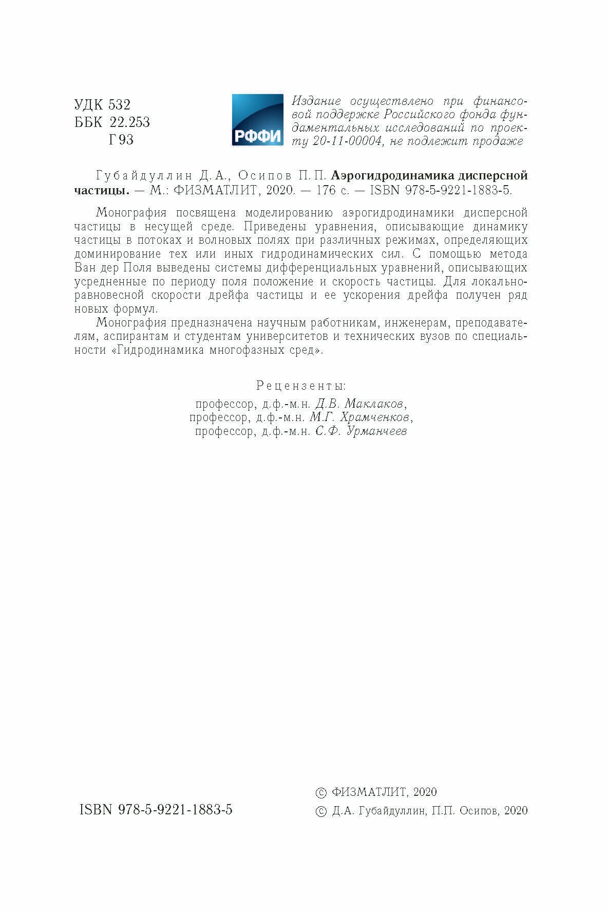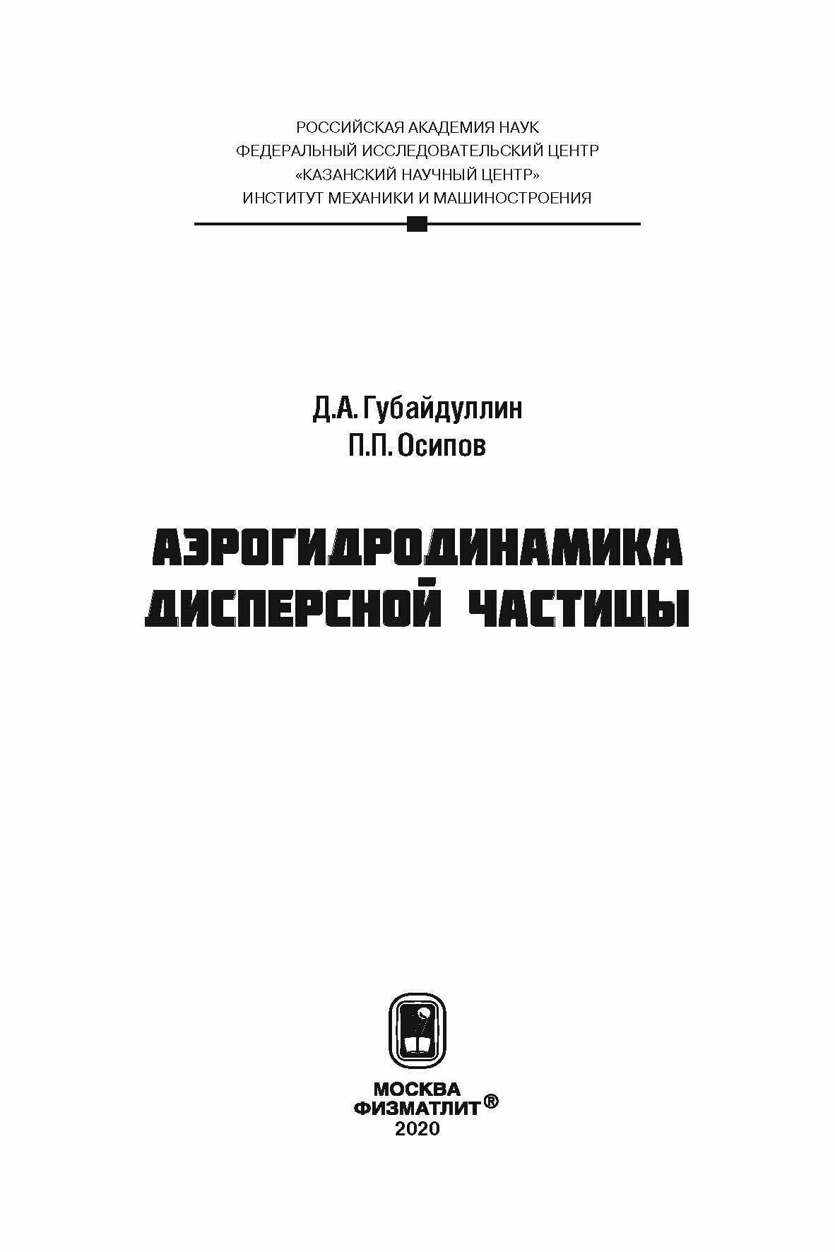 Аэрогидродинамика дисперсной частицы (Губайдуллин Дамир Анварович, Осипов Петр Петрович); Физматлит, 2020