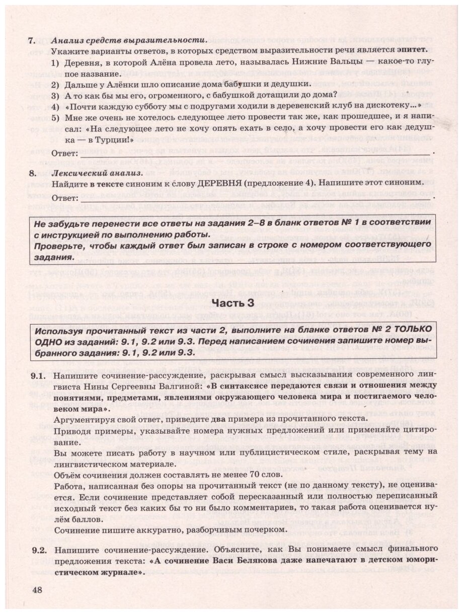 Назначение пособия - отработка практических навыков учащихся по подготовке к экзамену в 9 классе по русскому языку.