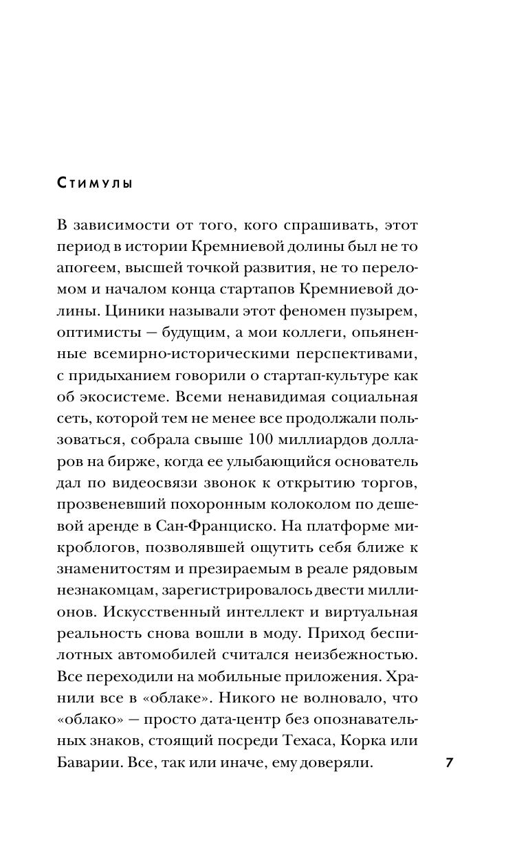 Очень хорошая история о переезде в Сан-Франциско и работе в Кремниевой долине. Напряжение и тревожную атмосферу чувствуешь еще сильнее, поскольку знаешь, что эта книга автобиографична. Что ждет молодую женщину в стартапе, занимающимся распространением электронных книг по подписке? Может ли работы в Кремниевой долине оказаться такой же крутой, как ты ее представляешь? Какую цену нужно заплатить за хороший годовой оклад?