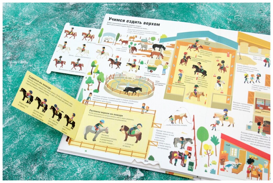Как понять лошадей, наблюдая за ними? Как за ними ухаживать, если они заболели? Как их дрессировать? Как научиться ездить верхом? Как лошади помогают людям? Чтобы ответить на эти и многие другие вопросы, Сандра Лабукари посещала конно-спортивные клубы и клинику для лошадей. Она присутствовала на уроках верховой езды и на конкурсах, общалась с кузнецами, работниками конюшен, с владельцами лошадей, ветеринарами и многими другими. Более 40 подвижных элементов сделают экскурсию в мир лошадей увлекательной и незабываемой!