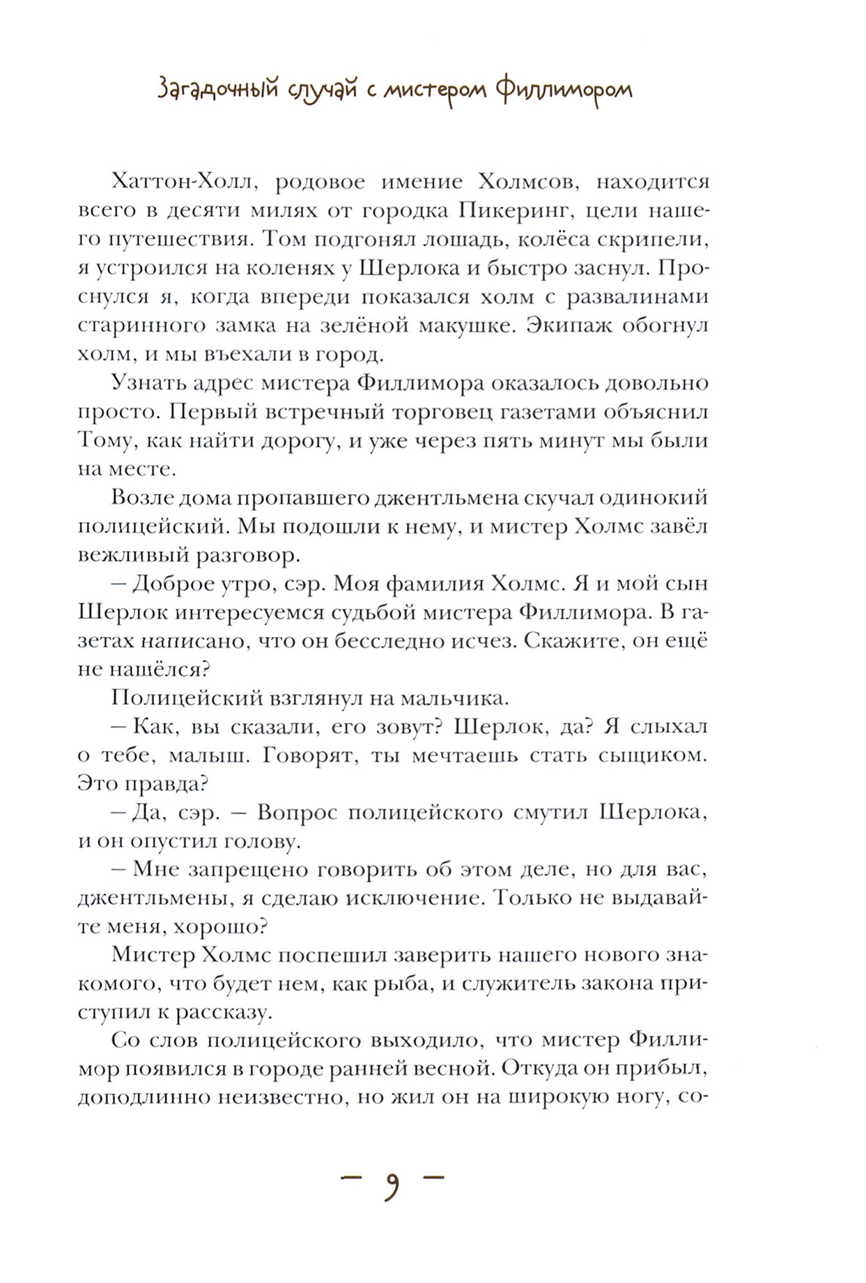 Я сама большой любитель детективного жанра, услышала об этой книге от одноклассника сына. И готова подтвердить - детям девяти лет очень интересно. Потом обсуждают загадки, которые главный герой смог разгадать. Прочитали все три книжки. И главное - сын потребовал классического Шерлока Холмса Конан Дойля. Самому пока сложно, поэтому я ему читаю некоторые рассказы.