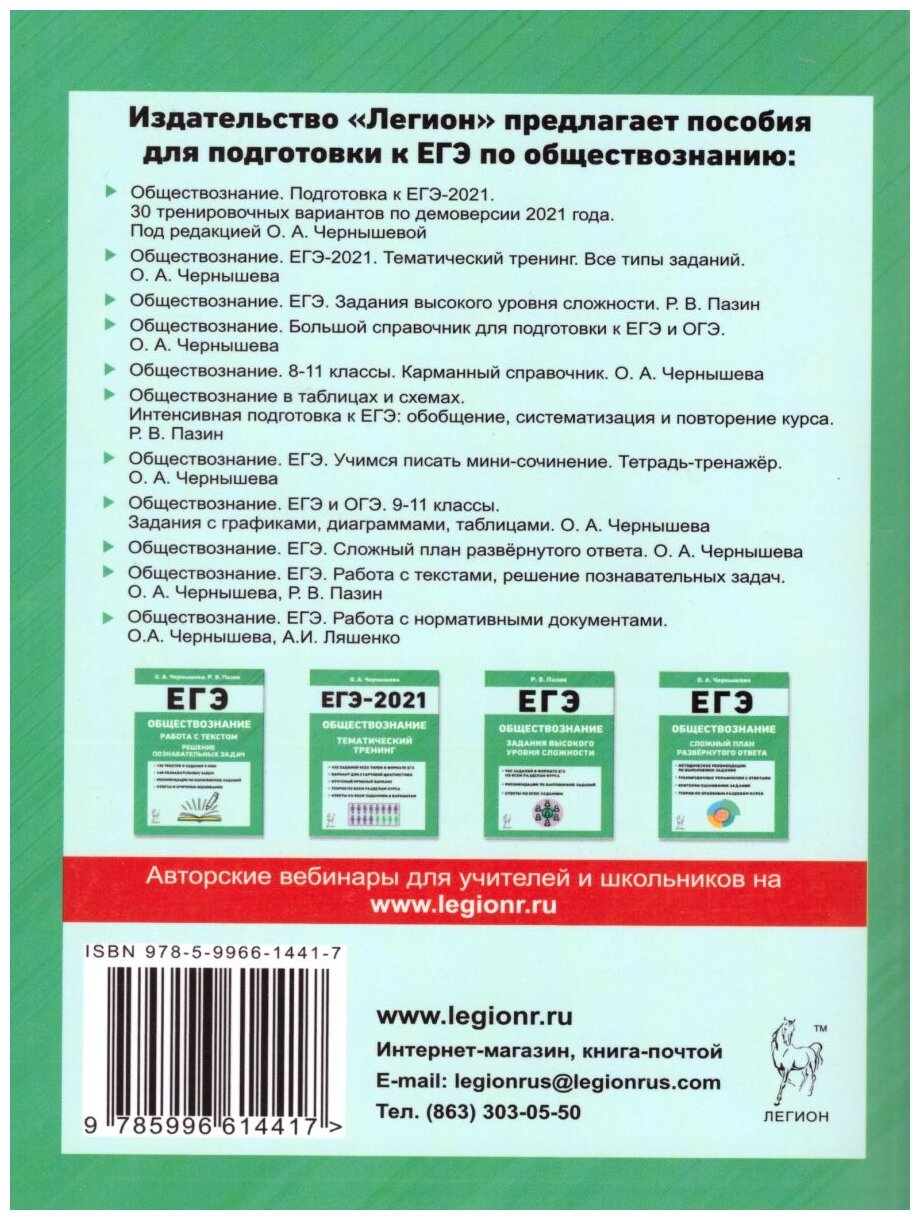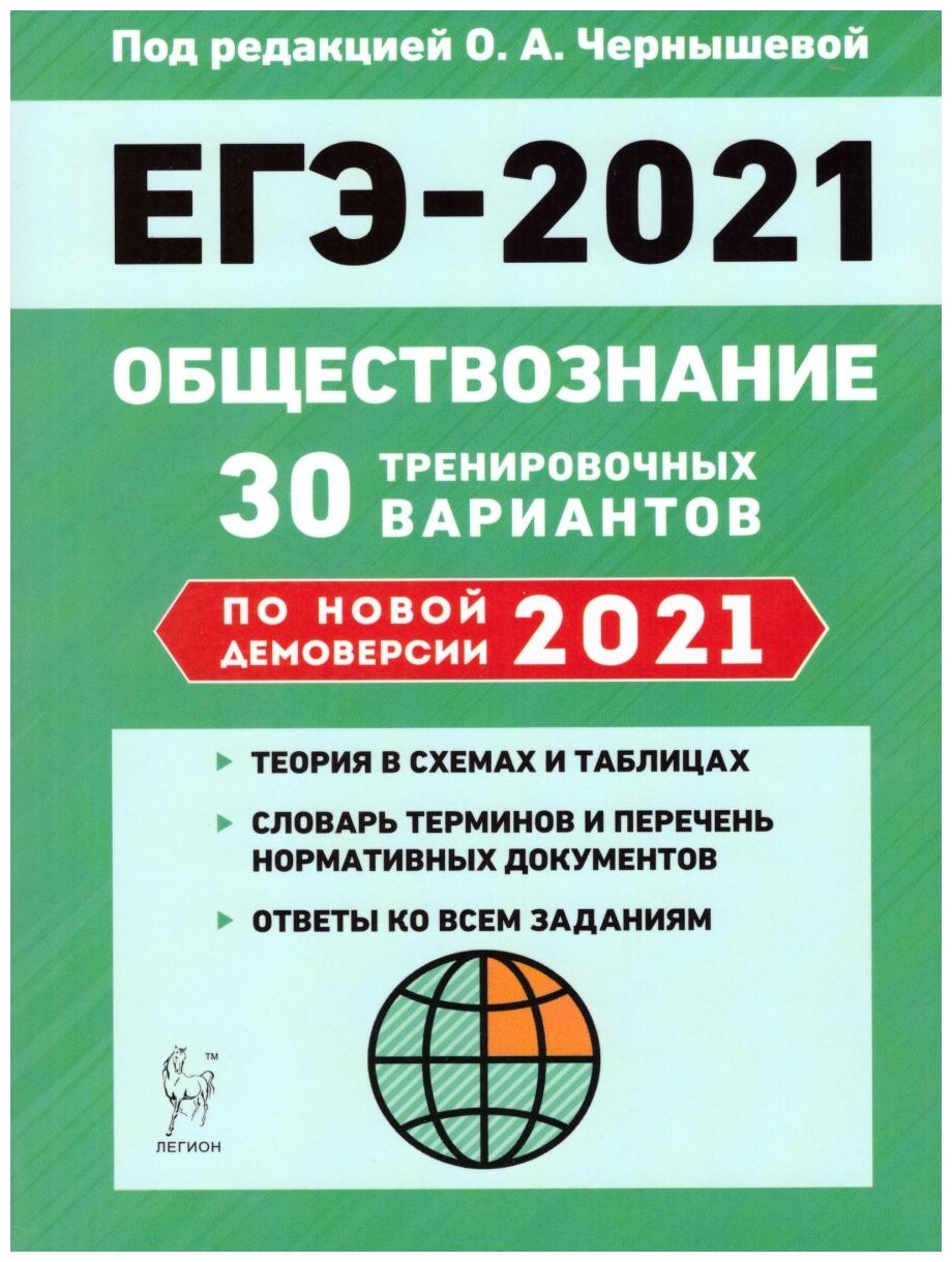 ЕГЭ 2021 Обществознание. 30 тренировочных вариантов по демоверсии 2021 года (Чернышова О. А.); Легион, 2021