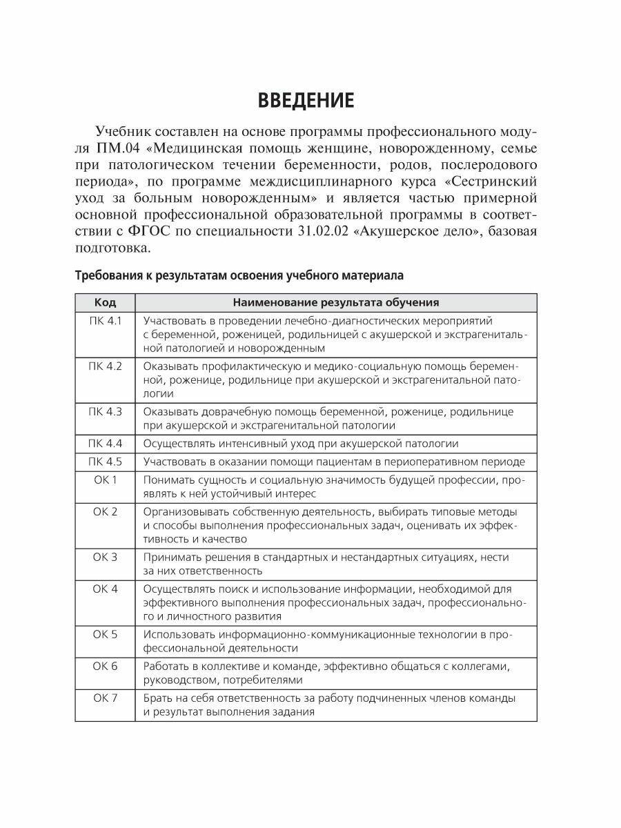 Учебник составлен в соответствии с федеральным государственным образовательным стандартом и утвержденной программой по междисциплинарному курсу "Сестринский уход за больным новорожденным" модуля "Медицинская помощь женщине, новорожденному, семье при патологическом течении беременности, родов, послеродового периода".