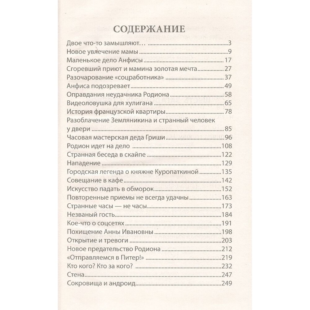 Чудес на свете не бывает, однако Рома Ершов и его подруга Анфиса Ягодкина неожиданно столкнулись с рукотворным чудом - старинными часами с шестью стрелками и тремя циферблатами, созданными искусным часовым мастером. Часы скрывают загадку сокровищ княжны Куропаткиной, спрятанных в одном из домов Санкт-Петербурга столетие назад. Роме и Анфисе удается раскрыть загадку необычных часов, но за ребятами начинается настоящая охота тех, кто любой ценой стремится заполучить сокровища княжны Куропаткиной и устранить всех свидетелей…