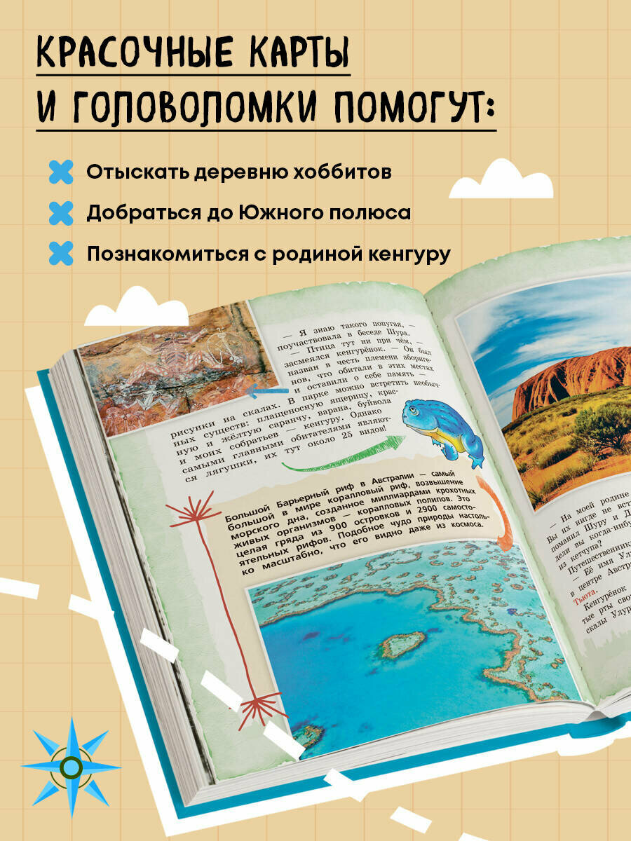 Хорошо ориентироваться в путешествиях вам помогут красочные карты. Кроме того, в путеводителе вы найдете разнообразные задания и головоломки, с ними узнавать мир станет увлекательнее.