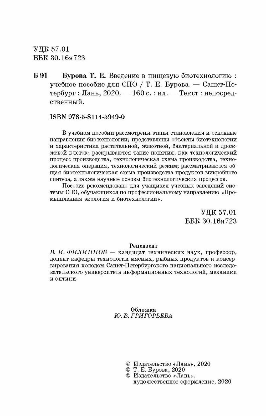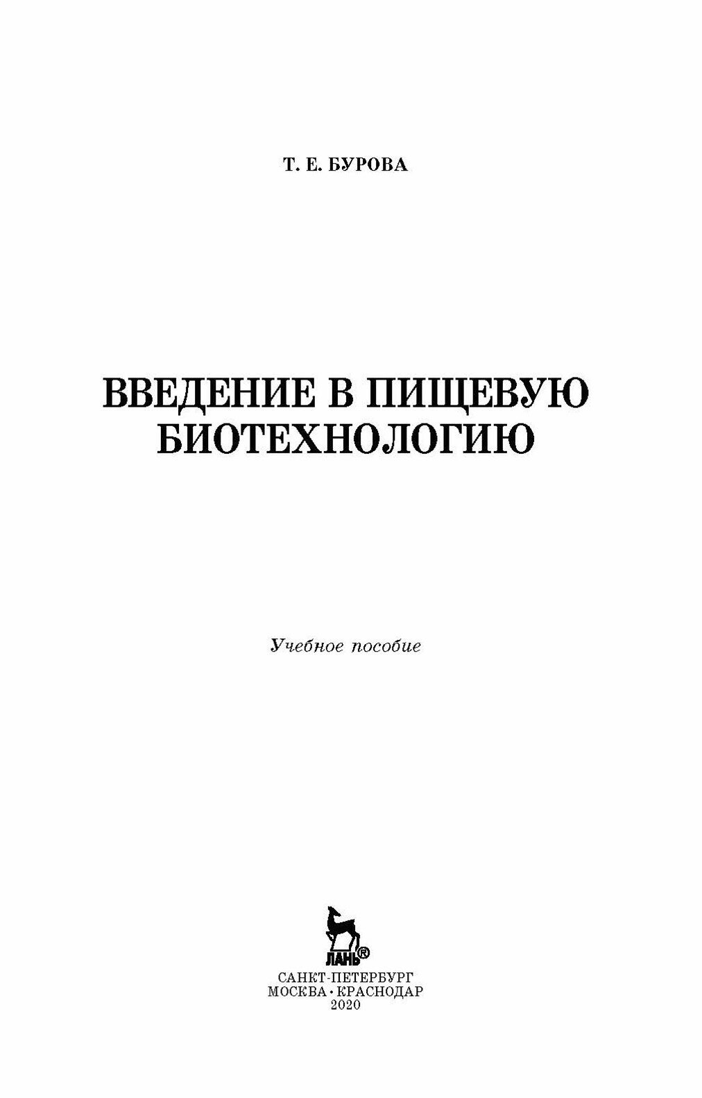 Введение в пищевую биотехнологию.Уч.пос.СПО (Т. Е. Бурова); Издательство ЛАНЬ, 2020