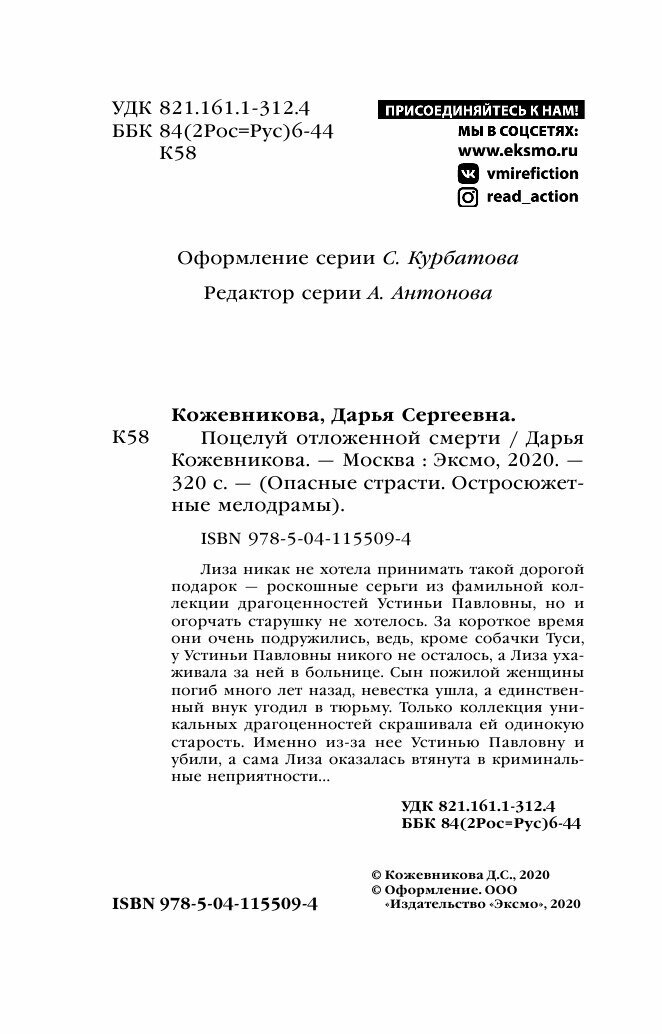Поцелуй отложенной смерти (Дарья Сергеевна Кожевникова); Эксмо, 2020