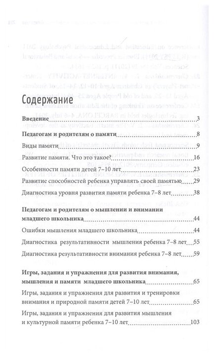 Книга содержит игры, задания и упражнения для развития памяти, мышления и внимания детей 7-10 лет. Представлена характеристика особенностей когнитивной сферы младшего школьника. Изложены пути и методы развития произвольного внимания, способностей к запоминанию и анализу учебного материала. Подробно описаны диагностические методики, позволяющие определять эффективность и уровень развития природной и культурной памяти детей 7-8 и 9-10 лет, а также результативность мышления и внимания младшего школьника. Представлены рекомендации по учету закономерностей функционирования познавательных процессов на уроке, которые могут быть полезны учителям начальных классов. Приложения содержат образцы развивающего и диагностического материала, который можно использовать в совместной деятельности с детьми разного возраста.