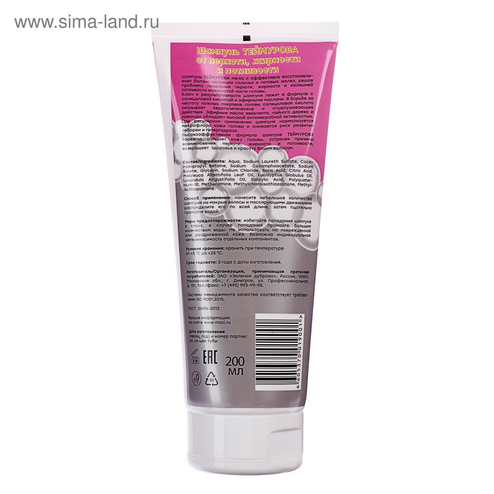 Шампунь теймурова от пота и перхоти туба 200мл ЗАО "Зеленая дубрава" (1093003)