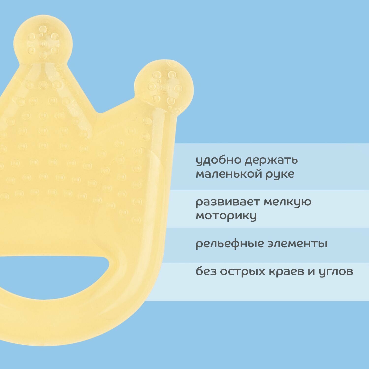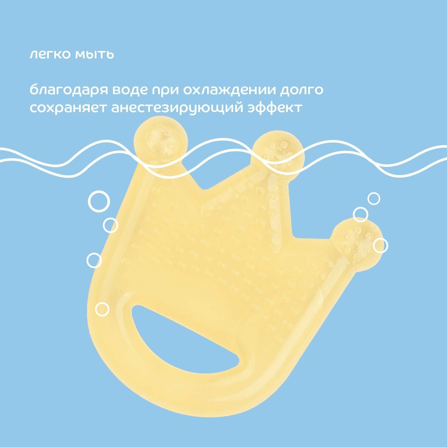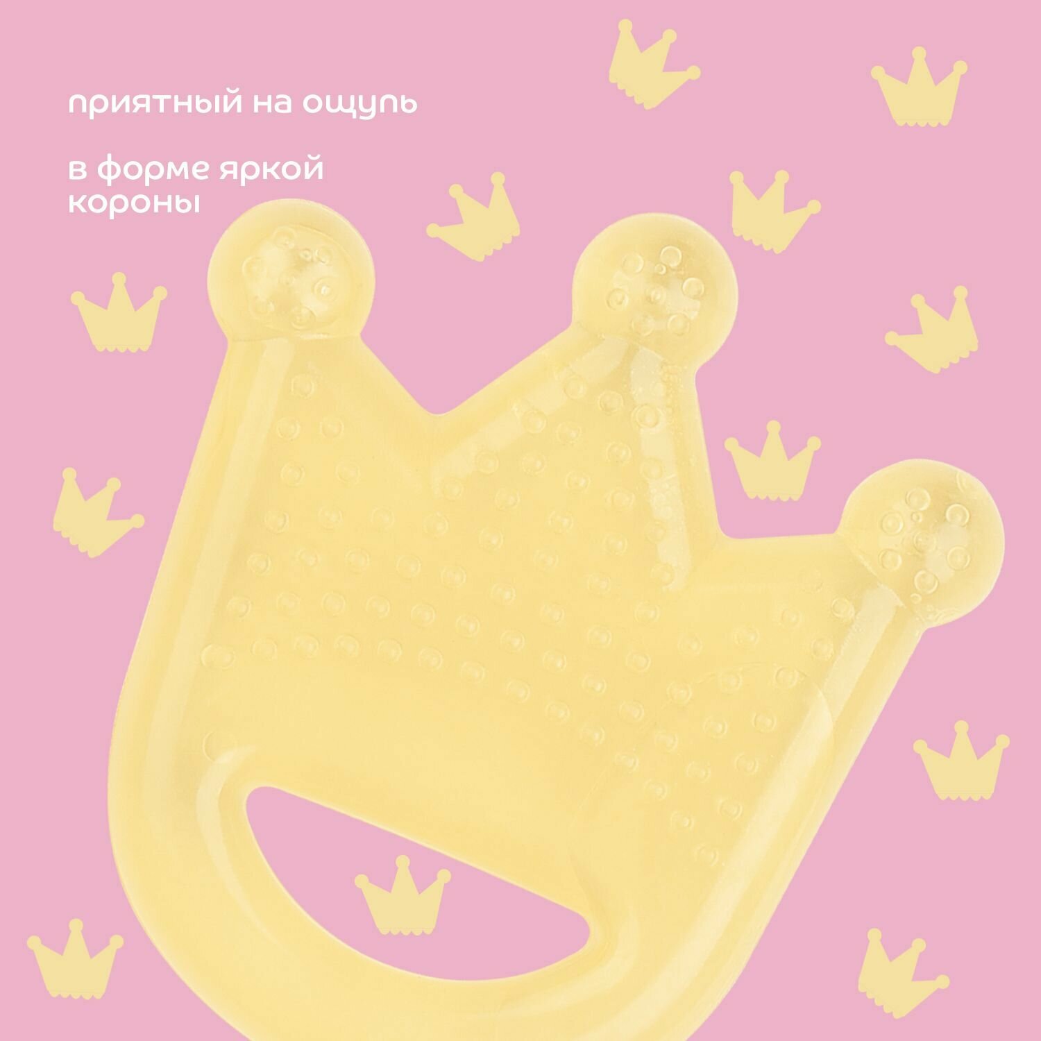 Состав этиленвинилацетат (EVA), очищенная водаОписание Бренд LUBBY Прорезыватель Just Lubby "Корона". Артикул: 22712 Прорезыватель поможет уменьшить неприятные ощущения во время прорезывания зубов. Благодаря текстурированной поверхности создается массажный эффект, успокаивающий раздражение. Содержит очищенную воду внутри. Для достижения дополнительного анестезирующего эффекта можно положить прорезыватель в холодильник на 10 минут. Подходит для всех стадий появления зубов. Изготовлен из безопасного материала и не содержит вредных веществ. Срок службы: 45 дней Срок годности: 5 Возраст от 4 месяцев.Показания Прорезыватель особенно пригодится в период появления первых зубов у малышей. Возраст: 4+Противопоказания Индивидуальная непереносимость материалов изделия.Способ применения и дозы Инструкция по использованию: Мыть в теплой воде с моющим средством. Тщательно ополаскивать. Не кипятить. Не помещать в микроволновые печи и стерилизаторы. Перед использованием рекомендуется положить прорезыватель на несколько минут в холодильник. (Внимание! Не помещать в морозильную камеру).Особые указания Хранить при комнатной температуре, в сухом проветриваемом помещении. Защищать от солнечных лучей и загрязнений. Проверять перед использованием. Не использовать при появлении признаков повреждения или износа. Не является игрушкой. Хранить в недоступных для детей местах. Сохранять упаковку. lubby - зарегистрированный товарный знак.Температура хранения от 2℃ до 25℃
