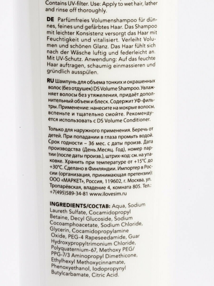 Ds volume shampoo шампунь для объема тонких и окрашеных волос (без отдушек) фл. 250мл Сим Финланд Ой (488811)