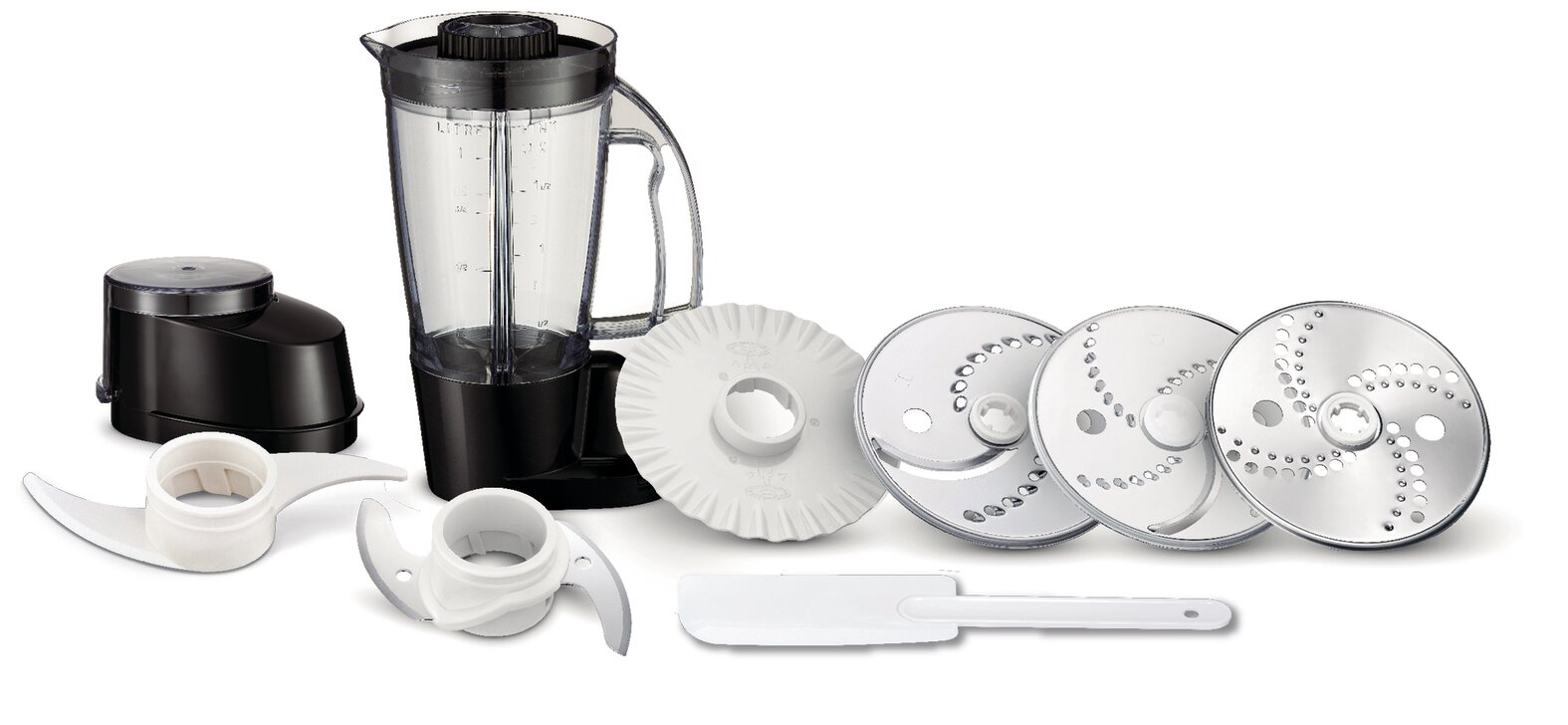 | Комплектация | Стационарный блендер, Мини-измельчитель, Мелкая терка, Крупная терка, Шинковка, Лопатка, Насадка для взбивания |