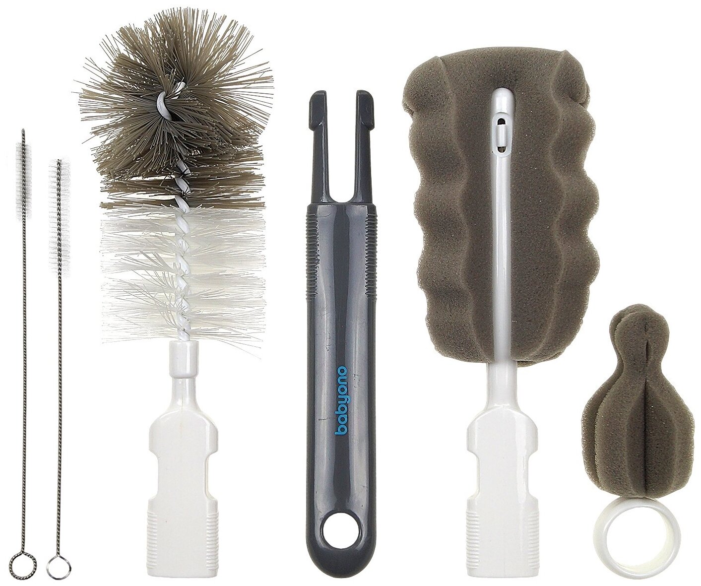 Набор ершиков для бутылочек и сосок BabyOno поможет сохранить детские принадлежности для кормления абсолютно чистыми. В комплекте: ершик для бутылок с губкой, ершик стандартный, два ершика для мытья сосок и трубочек и ершик для сосок с губкой. Ручка у ершика - съемная. Набор щеточек для бутылок и сосок помогает их тщательно очистить. Содержать в чистоте, своевременно менять треснувшую и потерявшую прежние свойства посуду очень важно. Набор снабжён двумя сменными наконечниками для мытья бутылок; один завершён на верхушке щётки с мягким волосом, второй - мягкой губкой. Наконечники можно произвольно менять. В набор включена дополнительно губка для мятья сосок. Щетка снабжена отверстием для подвешивания ершика для сушки перед следующим использованием. Ершики попадают в труднодоступные места, а удобная ручка обеспечивает стабильный захват. Мягкие щеточки ершика не поцарапают поверхность. Специально рассчитан на мытье вентиляционной системы бутылочек. Щетка для чистки соломинок незаменимый помощник на кухне. Очень удобны в хозяйстве. Перед первым использованием и по мере необходимости рекомендуется обдать ёрш кипятком, но не кипятить. После каждого пользования достаточно помыть его вручную тёплой водой (можно и со специальными детскими средствами). Щёточки хорошо запечатаны, так что, достав одну, остальные всё ещё можно будет хранить в оригинальной упаковке. Ерш соответствует требованиям безопасности детской продукции ТР ТС- все наши детские товары для новорожденных безопасны и имеют сертификат соответствия. Ершик для бутылочек изготовлен из прочных безопасных материалов ( из металла и нейлона.) , не содержит Бисфенол А (BPA free). Вместе с товарами для новорожденных набор ершиков прекрасно дополнит подарочный комплект на выписку в роддом, а так же это отличный подарок на выписку, на первый день рождения ребенка или Крестины. Ершики облегчат Вашу жизнь и освободит драгоценные минутки, чтобы посвятить их своим малышам.