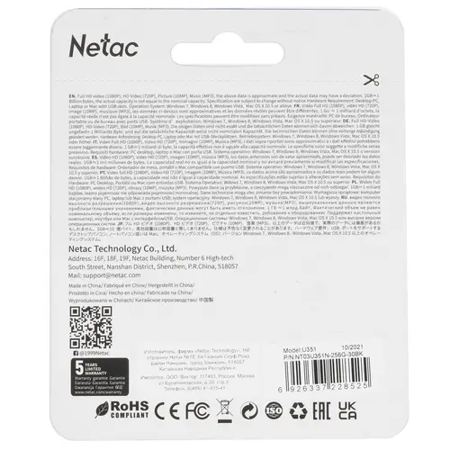 Флешка Netac U351 64Gb USB 3.0 Черный NT03U351N-064G-30BK