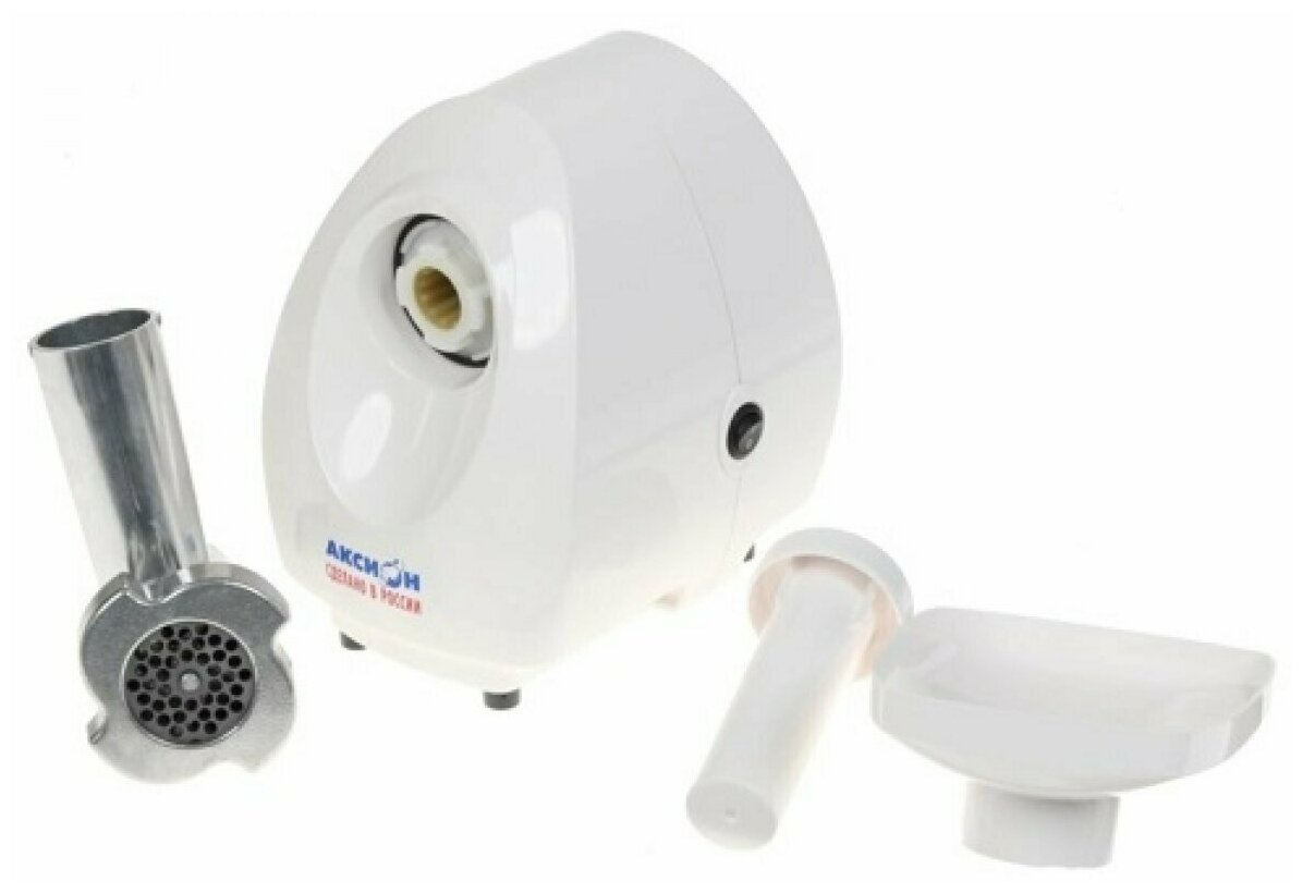 Если вашему домохозяйству требуется компактная электромясорубка, обладающая значительной производительностью, тогда вам подойдет Аксион Она способна перерабатывать до одного центнера мяса в час. Ее эффективность обеспечивается максимальной мощностью 1.5кВт. Отдельного внимания заслуживает прочный комбинированный корпус из металла и пластика. В комплекте поставляются 2 надежных диска для фарша.