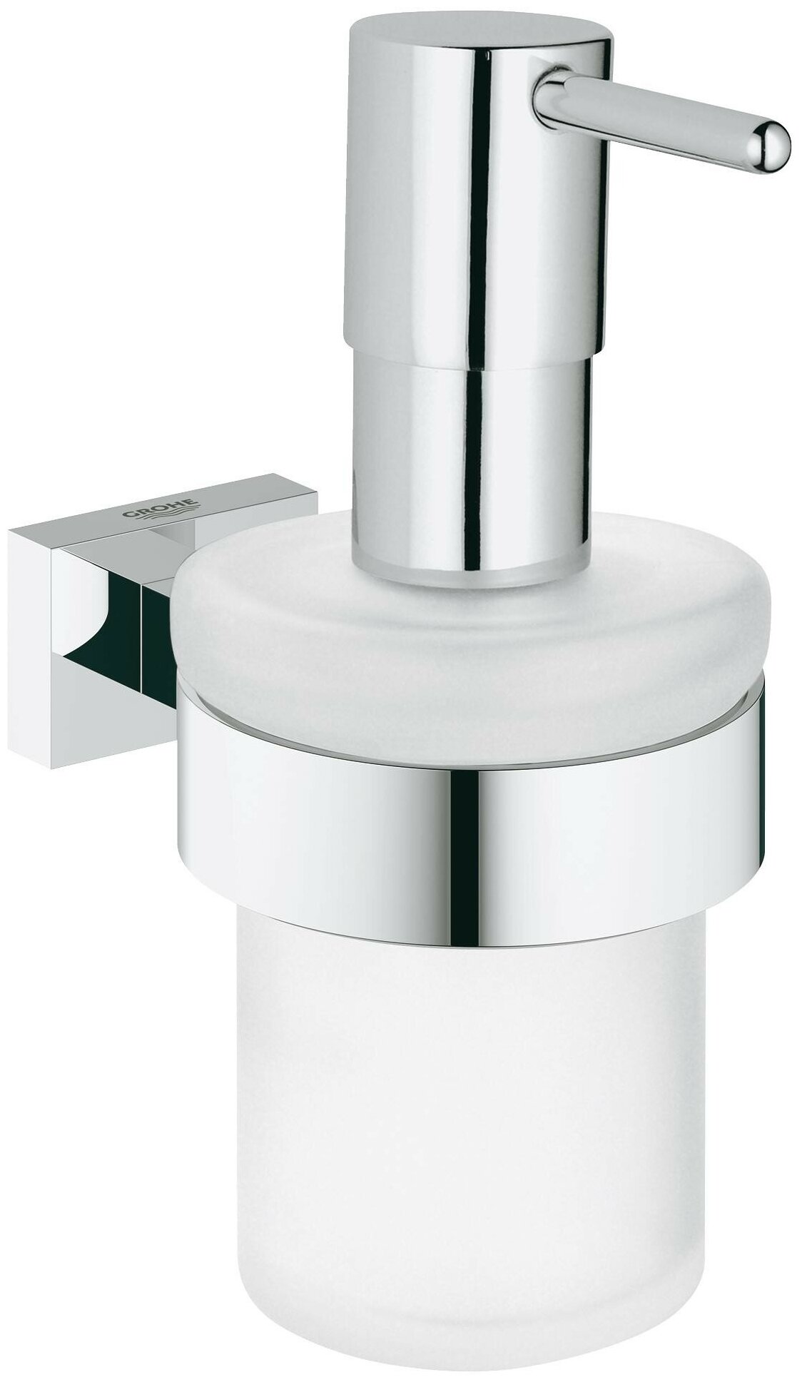 GROHE Essentials Cube держатель и диспенсер для жидкого мыла - лучшее решение для жидкого мыла для рук и готовый к использованию в любой момент. Выполнен в хромовом покрытии GROHE StarLight®, держатель всегда будет смотреться очень современно.