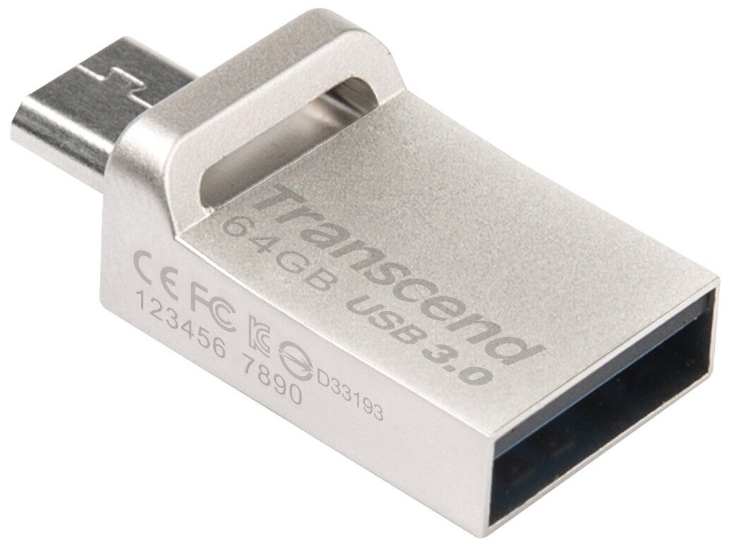 USB-флешка Transcend JetFlash 880S USB 3.0 OTG может использоваться для подключения как к компьютерам и ноутбукам, так и к мобильным девайсам. В ней имеется дополнительный разъем microUSB с поддержкой технологии OTG. Максимальное удобство. Благодаря минимальным размерам аксессуар не мешает пользоваться смартфоном или планшетом.Максимальная безопасность. Металлический корпус предотвращает повреждение устройства при падениях и ударах. Кроме того, он защищает внутренние компоненты от воздействия пыли и брызг воды.
