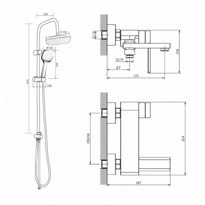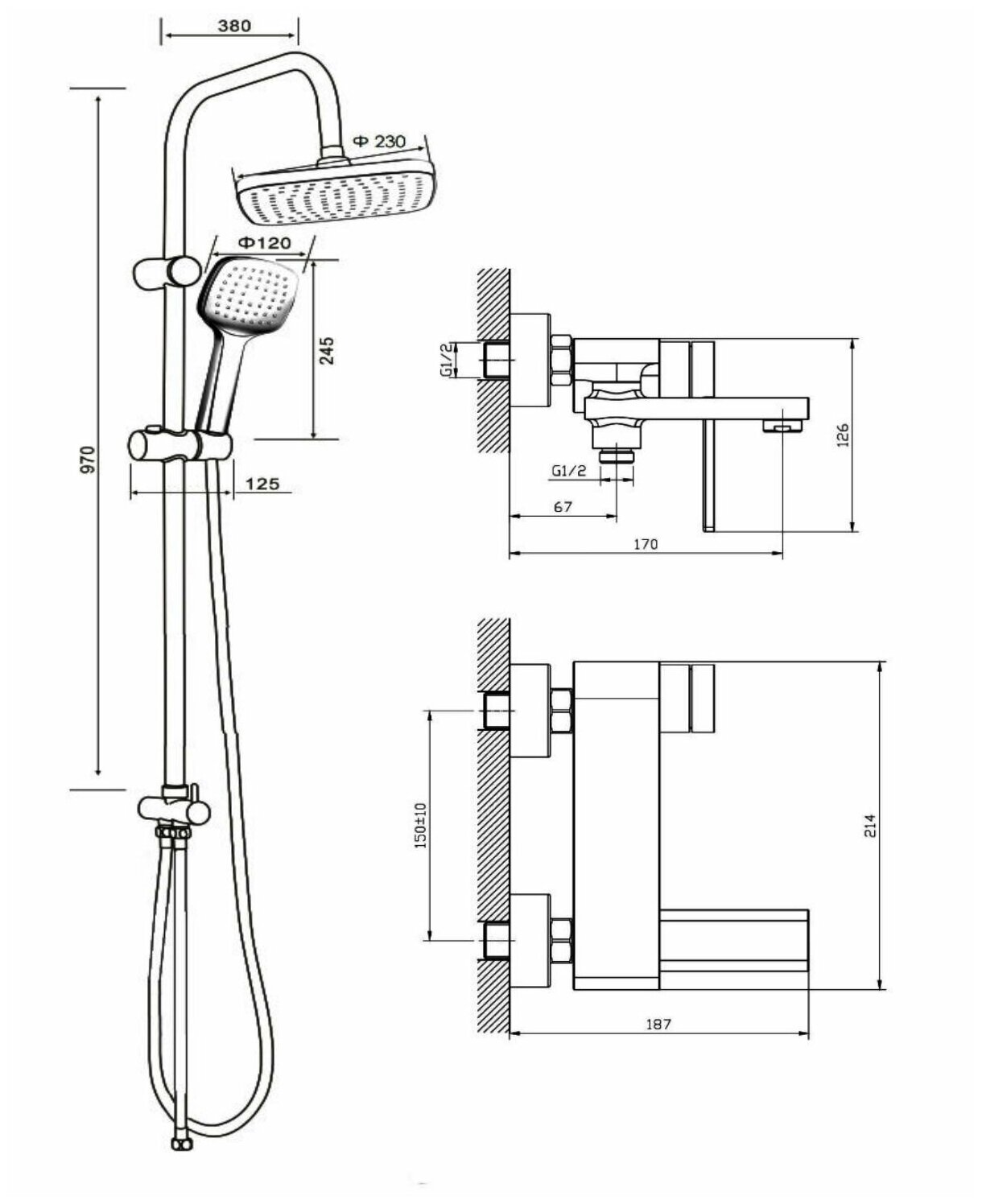 | Габариты верхнего душа | 230 |