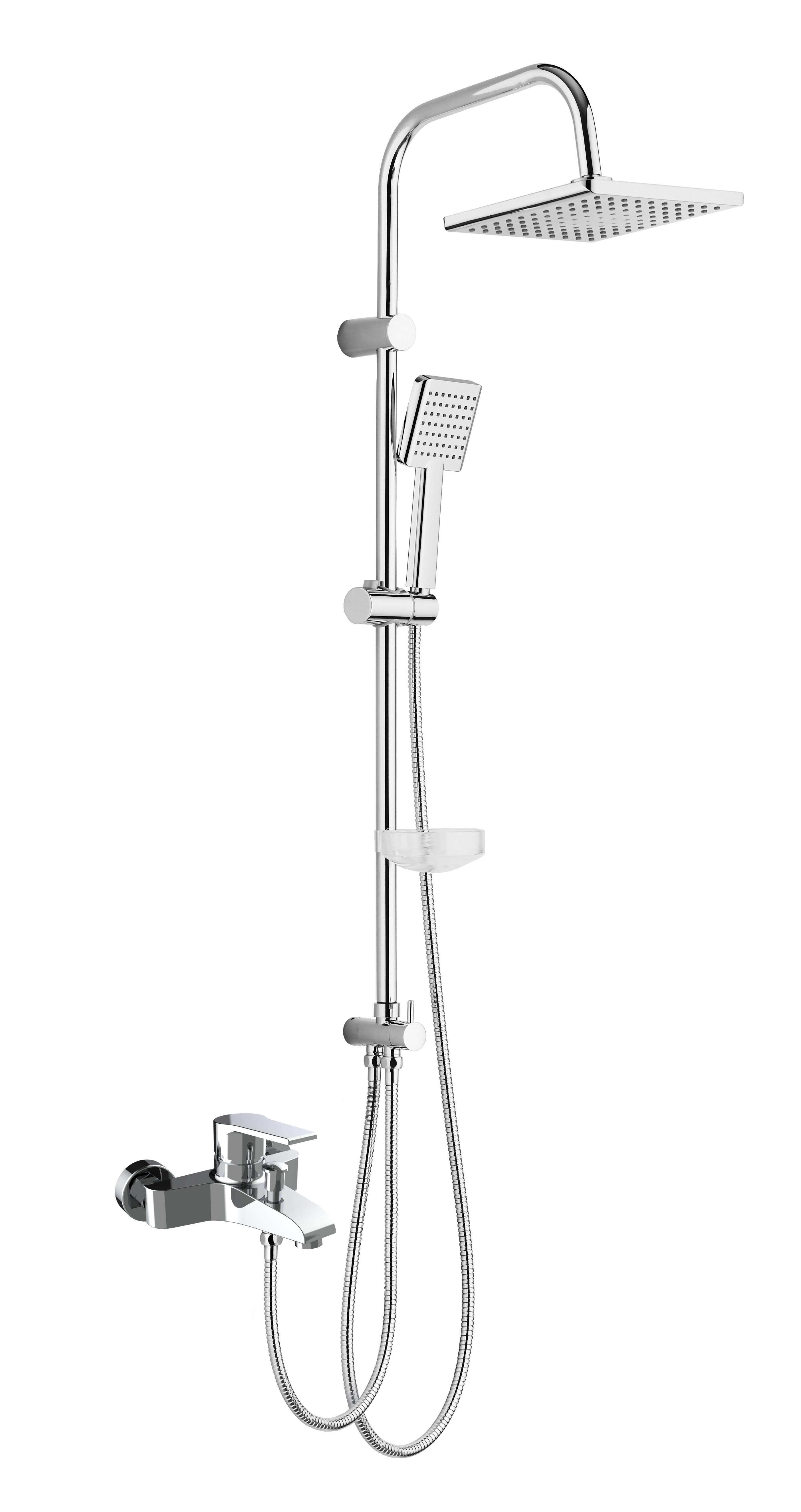 | ВКоробке | Душевая стойка - 1 шт. Верхний душ - 1 шт. Лейка - 1 шт. Шланг - 1 шт. Смеситель - 1 шт. Мыльница - 1 шт. Комплект эксцентриков - 1 шт. Инструкция - 1 шт. |