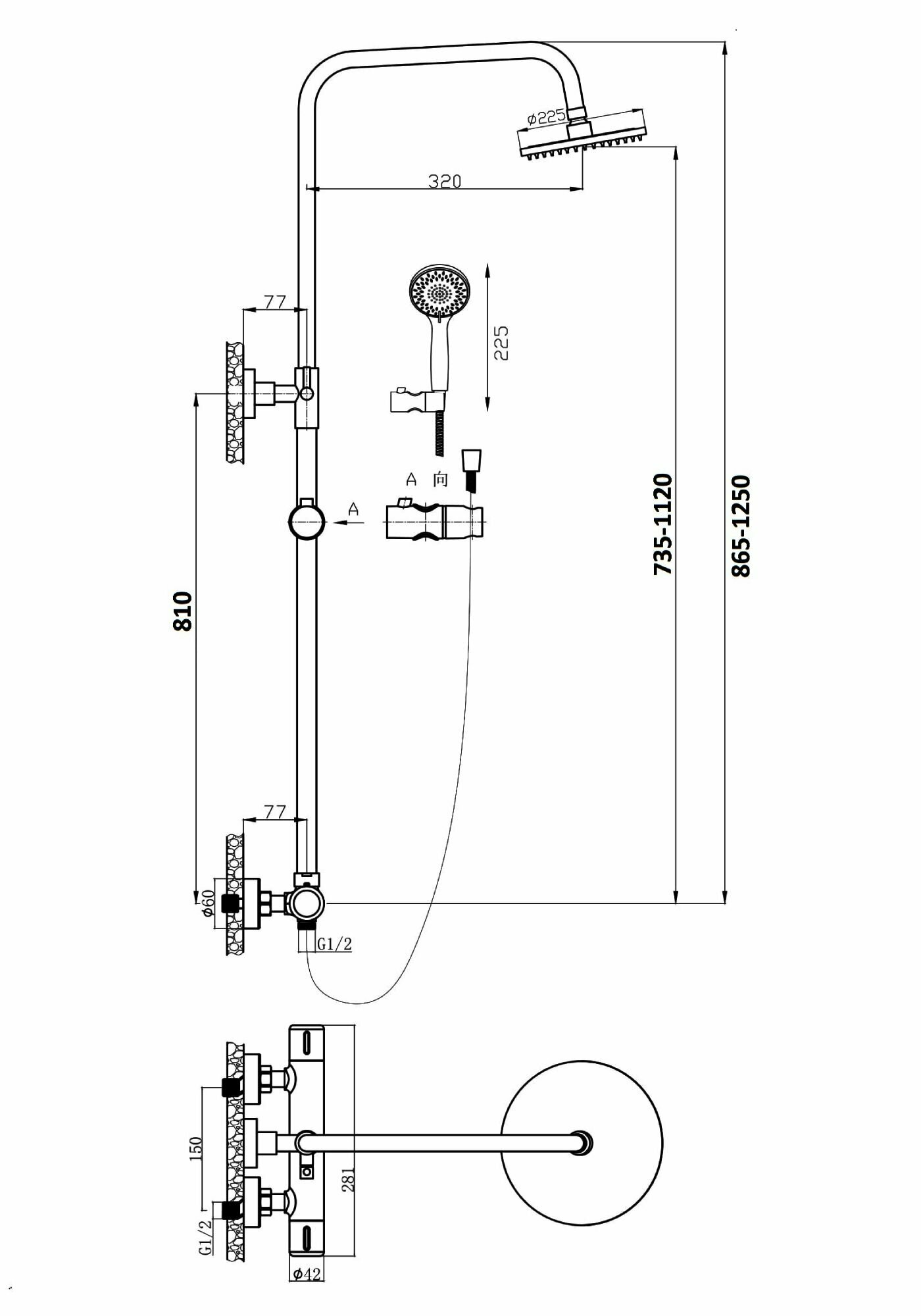 В комплекте поставки: душевая штанга, термостатический смеситель, верхний душ, ручная лейка, душевой шланг.
