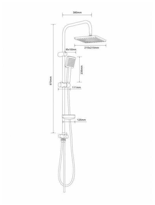 | Комплект поставки | верхний душ, шланг для душа, душевая лейка, душевая штанга, смеситель |