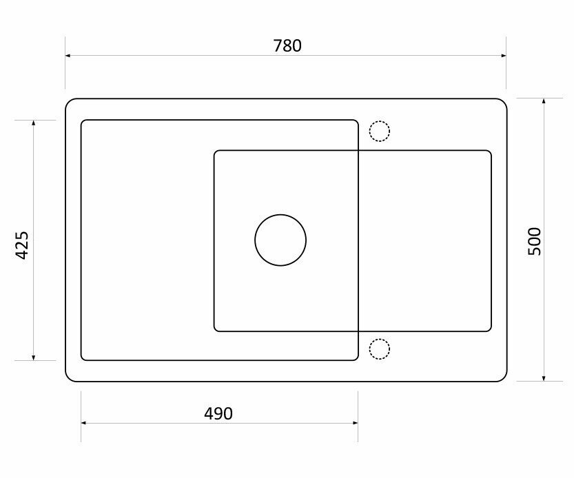 | Размеры мойки (ШхГ) | 780х500 мм |