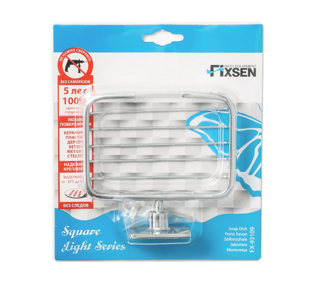 Мыльница-решетка Square торговой марки Fixsen станет хорошим выбором для ванной или туалетной комнаты. Аксессуар выполнен из латуни с многослойным хромоникелевым покрытием, благодаря чему устойчив к коррозии, легко чистится, не утрачивает зеркального блеска и не образует на плитке неприглядных ржавых подтеков. Быстро и надежно крепится к стене с помощью инновационной клейкой основы, взаимодействующей со всеми материалами и не требующей идеальных поверхностей.