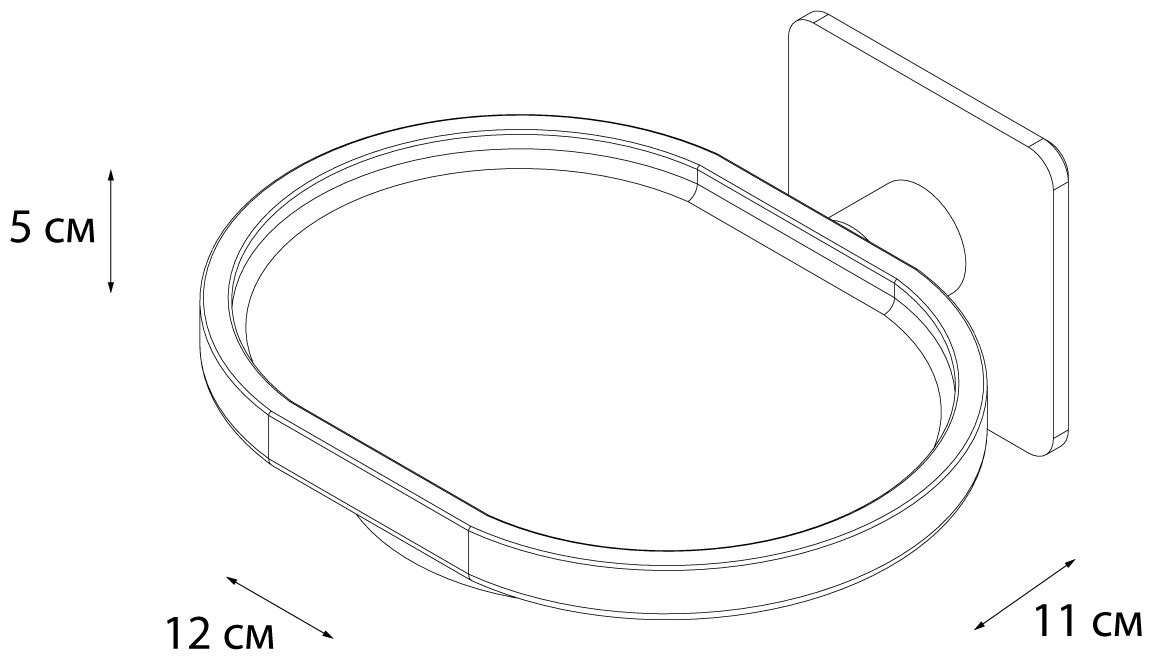 мыльница, монтаж: настенный. Ширина: 12. Высота: 5,5 см. Глубина: 11,3 см. Метод крепления: клейкая основа. Тип рисунка: без рисунка. Фактура: прозрачная. Форма: округлая
