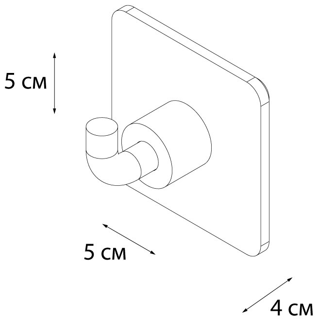 крючок одинарный, монтаж: настенный. Ширина: 5,5. Высота: 5,5 см. Глубина: 4,5 см. Метод крепления: клейкая основа. Тип рисунка: без рисунка. Фактура: гладкая. Форма: прямоугольная