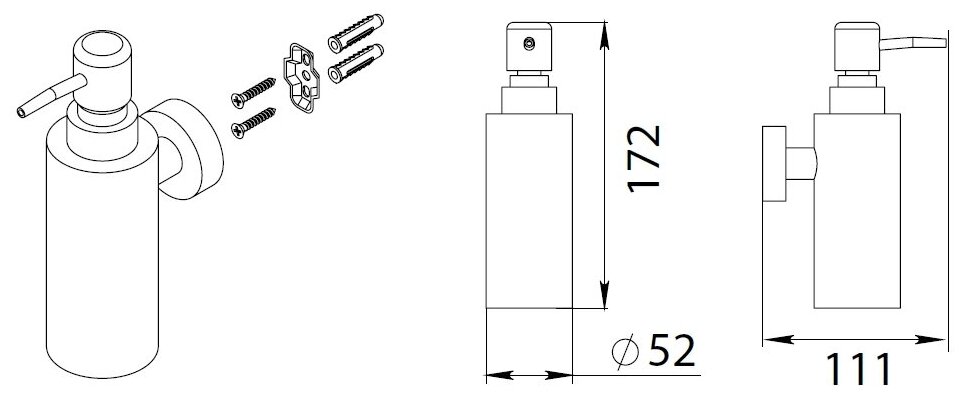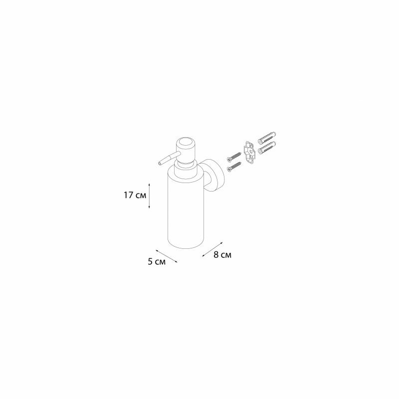 Дозаторы для жидкого мыла для настенного монтажа при помощи шурупов. Размеры: 5,2x17,2x11,1 см.