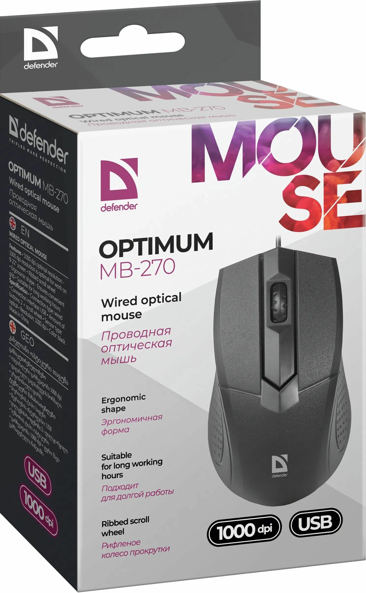 DEFENDER Optimum MB-270 - это проводная оптическая мышка, отличающаяся лаконичным дизайном и высоким качеством исполнения.