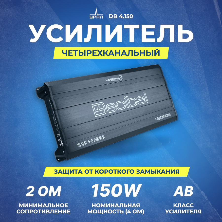 Четырехканальный усилитель класса AB серии Decibel от компании Ural Sound. Широкий полосовой фильтр с независимой регулировкой верхней и нижней границ. Развитые фильтры до 8 000 Гц на каждый канал. Высокая точность звучания. Расширенный частотный диапазон. Низкие гармонические искажения.