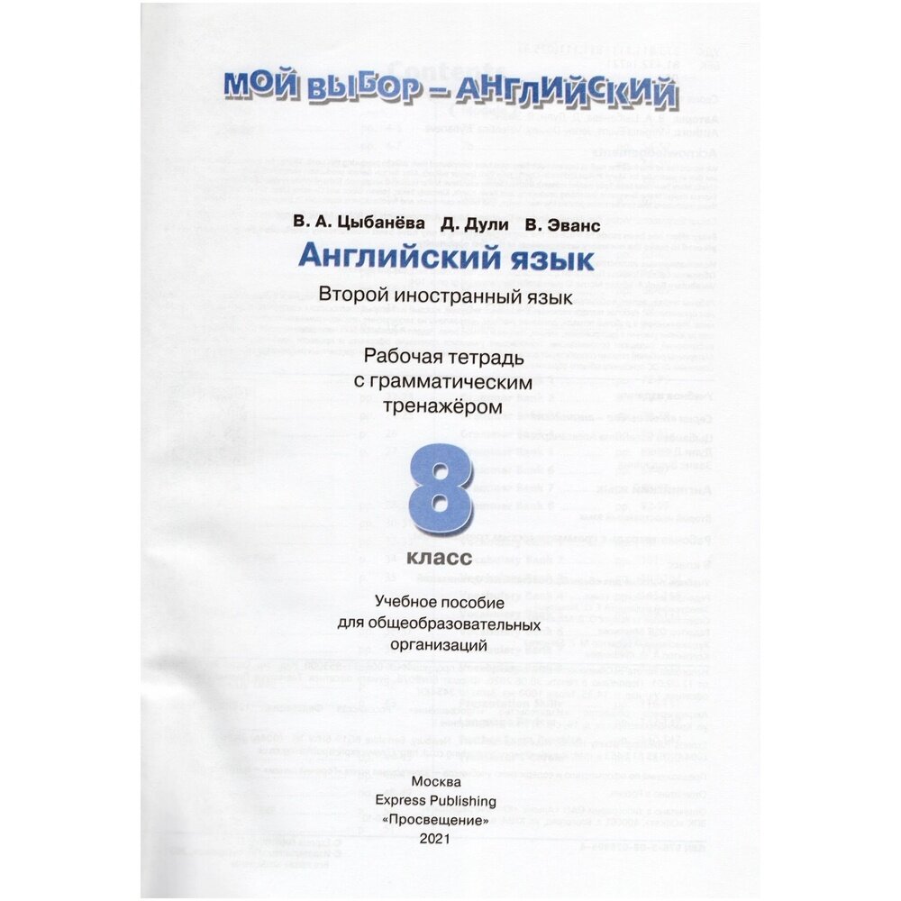Английский язык. 8 класс. Рабочая тетрадь с грамматическим тренажером (Дули Дженни, Эванс Вирджиния, Цыбанева Валентина Александровна); Просвещение, 2023