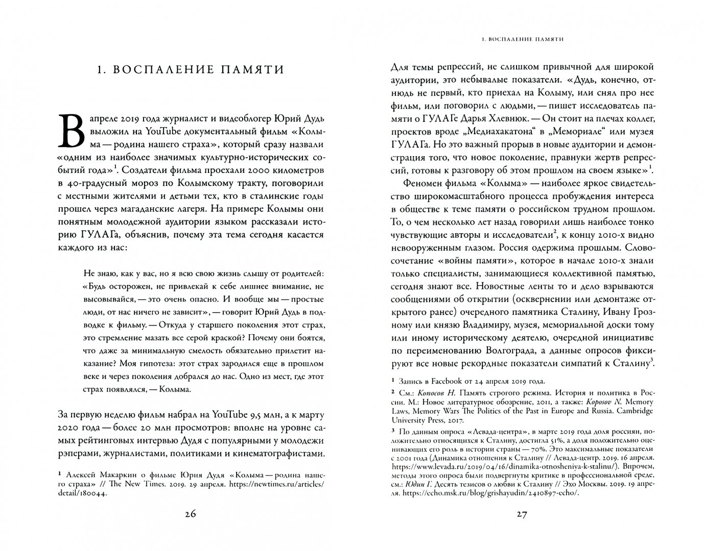 Книга определенно заслуживает того, чтобы ее приобрели и прочли.Блестящее исследование-размышление о том, как трудно примиряться разным странам с неудобными фактами из собственного прошлого. И речь не только о современной РФ. Здесь актуальны примеры Турции, и даже немного Германии, где после окончания ВМВ было тоже все не столь однозначно. Однако российский пример исследуется наиболее полно. Особенно важно, что автор описывает происходящее не скучным, но живым языком. Апеллирует к новейшим событиям, и источникам, в т.ч. в блогосфере. Например, отдает должное феномену фильма Юрия Дудя о Колыме, который вызвал множество споров и показал, что тема государственного террора остается болезненной. Упоминаются и рассматриваются другие эпизоды новейшей российской истории, связанные с обращением к теме репрессий и увековечивании памяти их жертв. Достоинство книги в том, что текущая реальность в данном вопросе исследована и систематизирована. Ведь дискурс, связанный с памятью жертв политических репрессий - он сам по себе многоплановый. И его описание, анализ и изучение - не менее знаменательно, чем сама тема репрессий. Пожалуй, нигде так не показана сложность преодоления негативного опыта прошлого - его неоднозначность и спорность, как в представленной книги. При этом российский аспект автор рассматривает непосредственно с самой трагедии - переходя к этапам ее осмысления. От хрущевской десталинизации до современного состояния дел.Проделана огромнейшая работа, по итогам которой выработан системный и взвешенный взгляд. Неоспоримо: книга исключительно важна для понимания текущего состояния дел в вопросе возвращения исторической памяти и осмысления трагических страниц прошлого (государственных преступлений) не только в России, но и в других государствах.