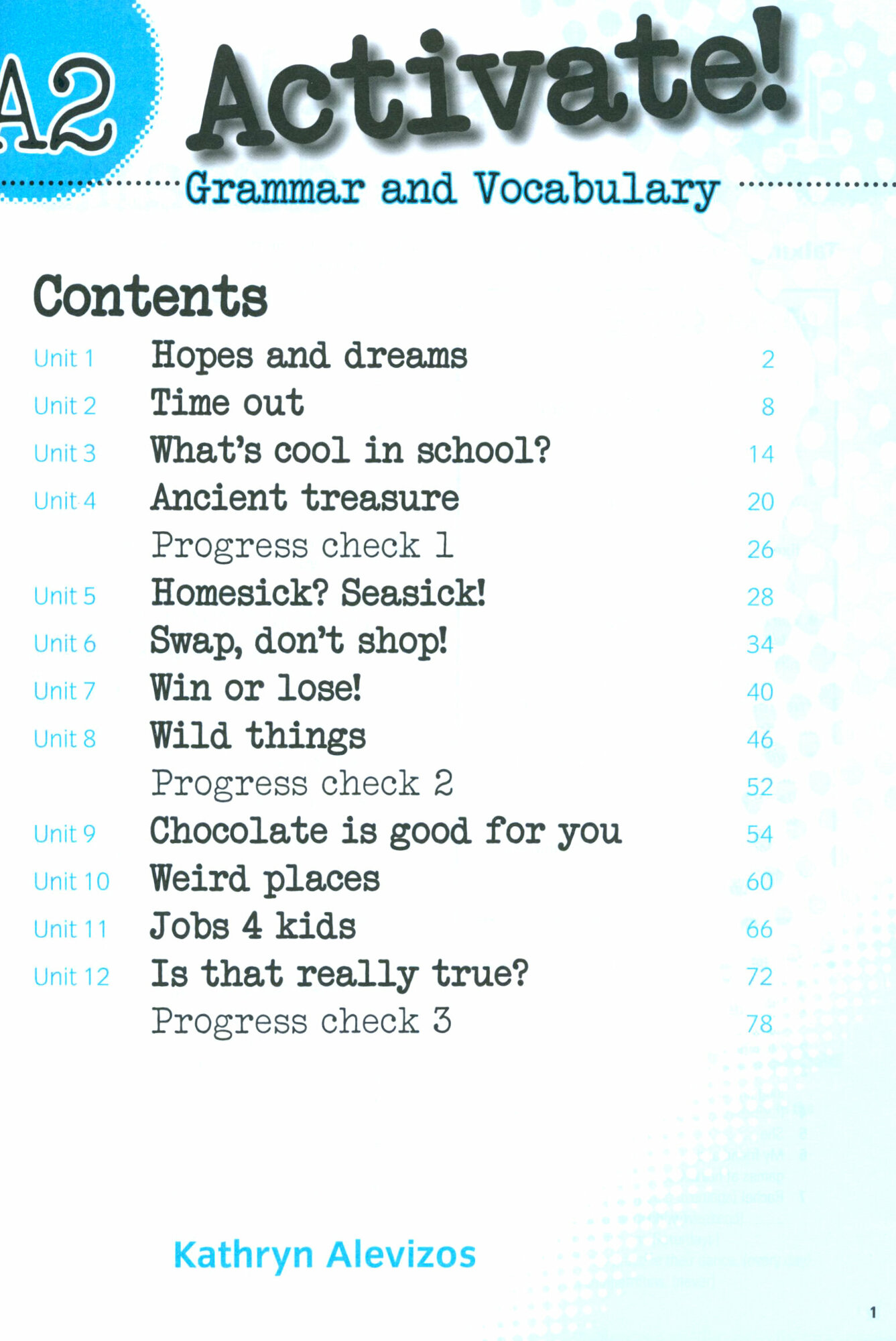 Activate! A2 Grammar & Vocabulary (Carolyn Barraclough; Elaine Boyd; Mary Stephens; Suzanne Gaynor; Megan Roderick); Pearson, 2010