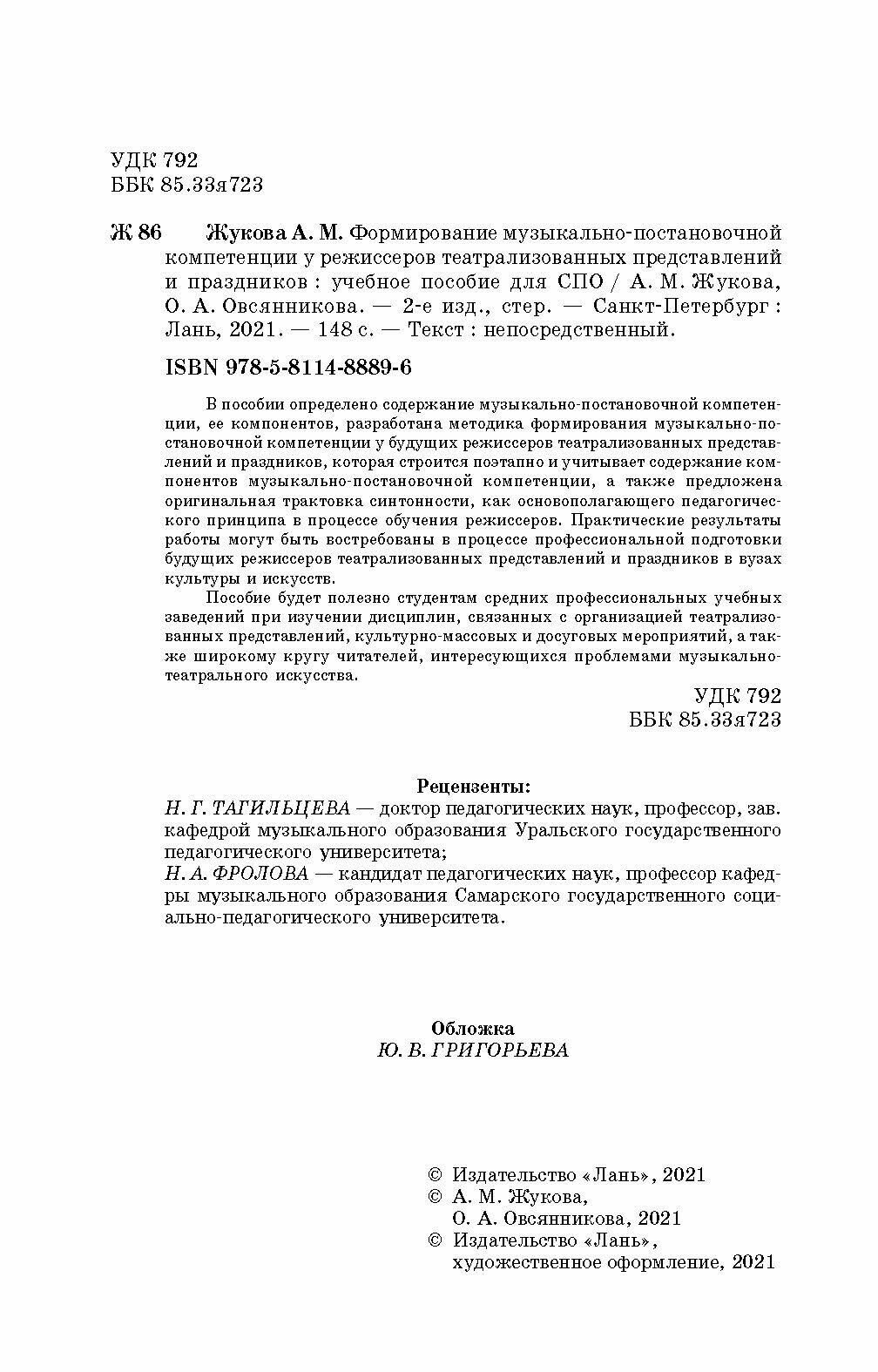 Формирован.муз-пост.компетенц.у режиссер.театр.СПО (Жукова Анна Михайловна, Овсянникова Оксана Александровна); Лань, 2021