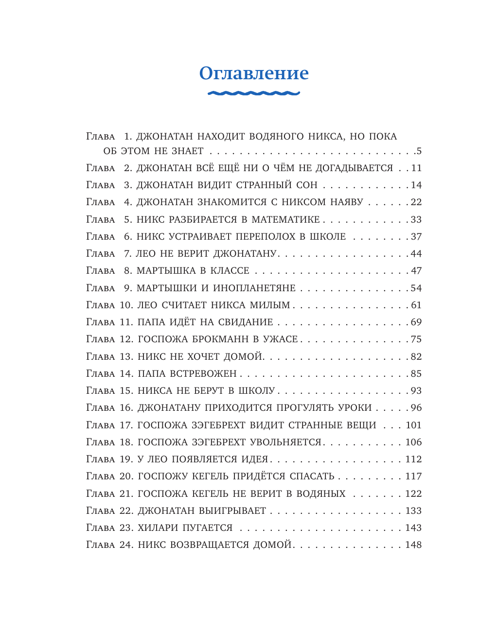 Очень интересная, милая и смешная история про непослушного и забавного водяного Никса и его маленького друга Джонатана. Мне эта история чем-то напомнила историю про Карлсона, а Никс такой же хулиганистый и всё-таки очень милый. Книга увлекательная, с прекрасными картинками, хорошим лёгким слогом, шрифт удобный для чтения ребёнка и она очень понравилась и дочери, и мне.