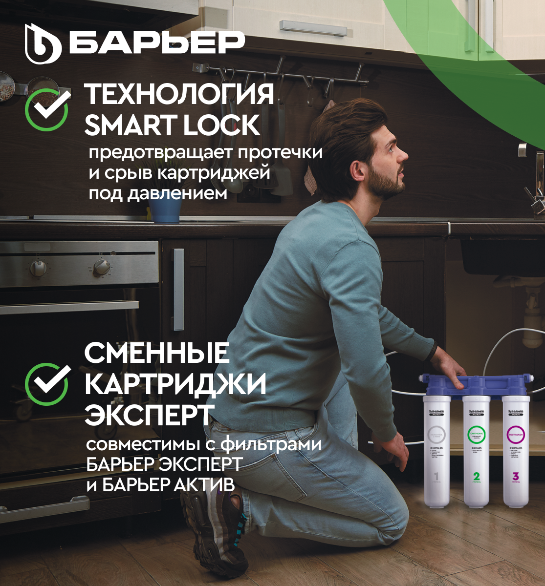 Как установить БАРЬЕР ЭКСПЕРТ — трехступенчатый фильтр для воды под мойку