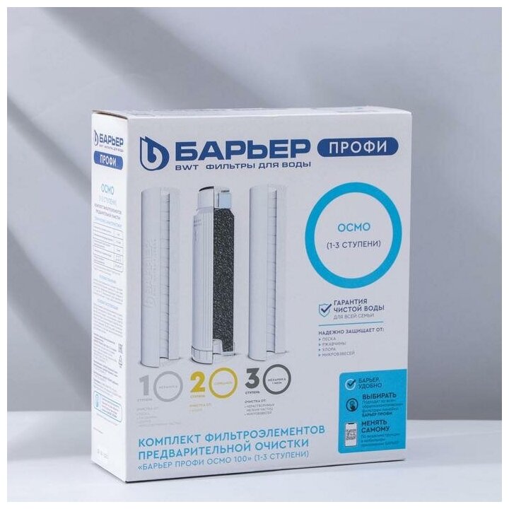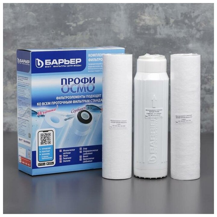 Сервис сравнения цен СкидкаГИД предлагает сравнить цены на товар «Комплект фильтроэлементов предварит. очистки Барьер ПРОФИ Осмо (1-3 ступени)»