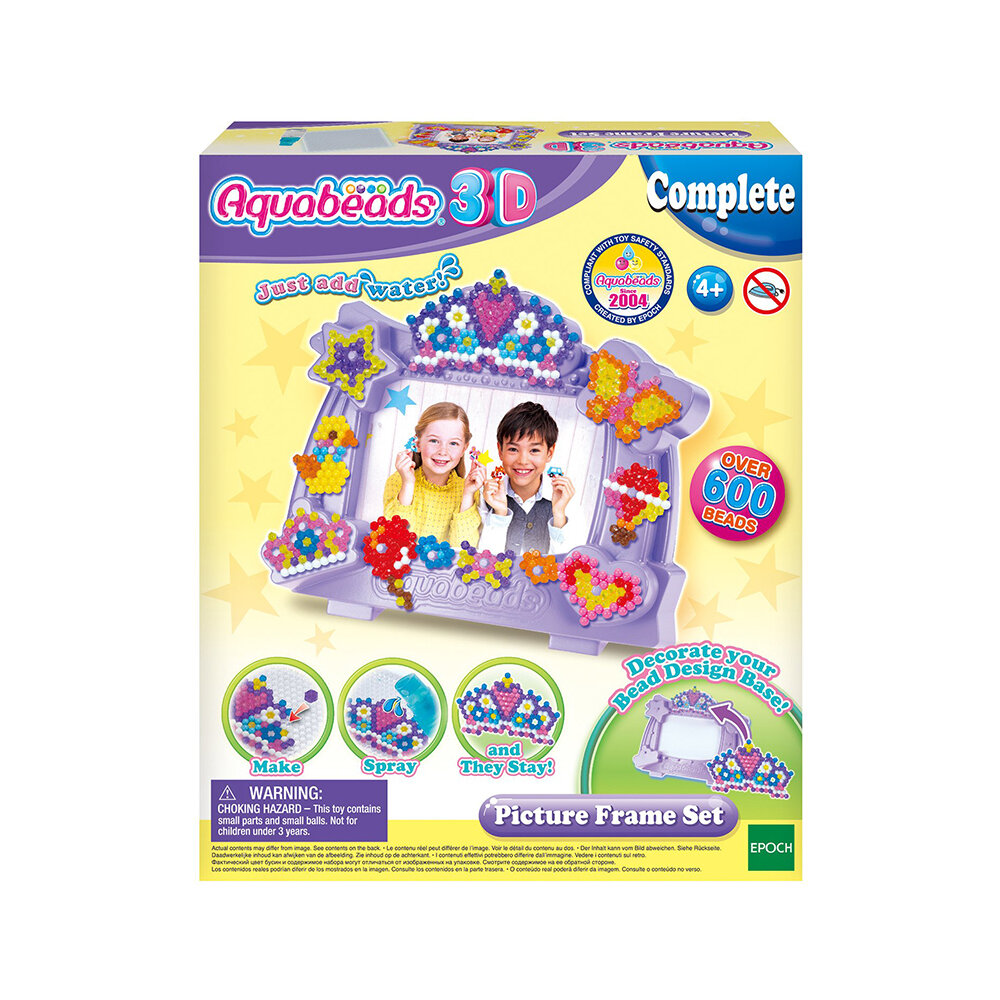 Aquabeads 3D-набор Фоторамка Новый 3D-набор Aquabeads Фоторамка позволит легко и просто создавать рамки для фотографий, которые можно использовать для украшения комнаты. А еще это занятие необычайно увлечет ребенка. Собственноручно сделанная и украшенная бусинами рамка станет отличным сувениром, а внутрь нее всегда можно поставить любимую фотографию. Но это еще не все. Дополнительные листы с шаблонами не дадут заскучать. Рамка готова? Тогда можно приступить к изготовлению забавных фигурок. Чтобы создать поделку из бусин, необходимо взять форму, положить в нее шаблон. Затем по схеме выкладываются бусины и опрыскиваются обычной водой. После того, как игрушка высохнет, можно использовать ее для игр или украшения. Особенности: Основу рамки можно украсить игрушками из бусин. Дополнительные аксессуары для игры не потребуются. В наборе есть все, без исключения. Рамку можно использовать как декоративный элемент, вставляя в нее фотографии. Нельзя использовать детям младше 3-х лет, так как в комплекте есть мелкие детали. Рекомендуется для детей от 4-х лет. Комплектация: 600 бусин 12 цветов. Основа для фоторамки. Форма для бусин. Бутылочка для воды. Три листа с шаблонами. Инструкция.