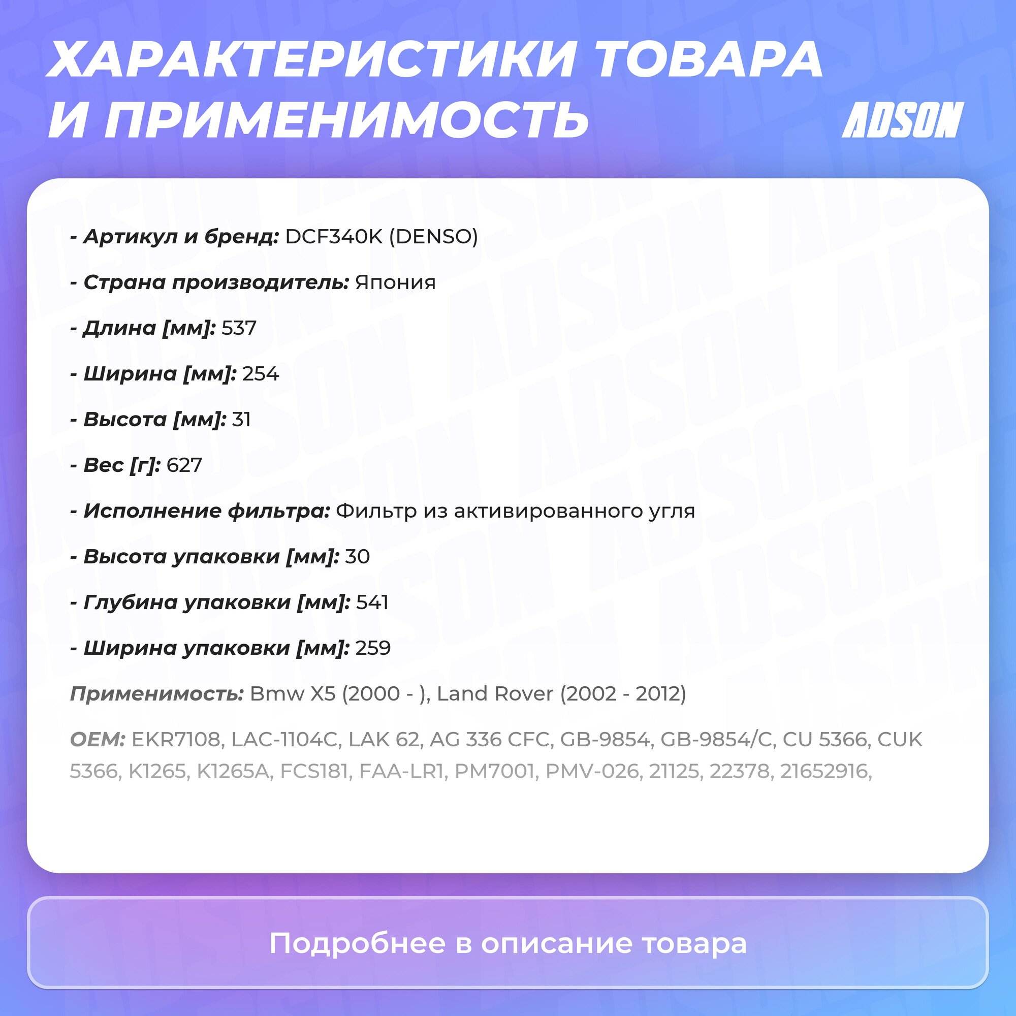 На сегодняшний день товар «Фильтр салонный DENSO DCF340K» можно купить с кешбеком в 1 магазине: Яндекс.Маркет