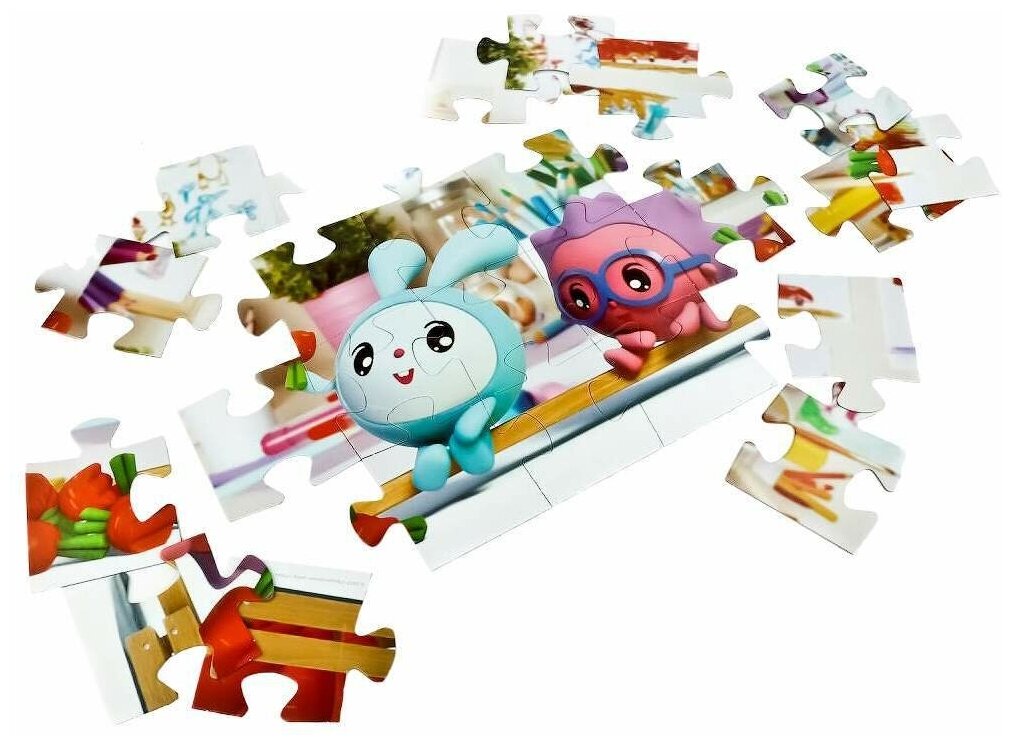 Игры этой серии помогут развить мелкую моторику рук ребенка, а также улучшить концентрацию внимания, расширить кругозор и воспитать усидчивость. MAXI-пазлы разработаны специально для маленьких детей. Крупные крепкие детали удобны для захвата детской ручкой. А красочное оформление изображения каждого предмета, приближенное к натуральному, позволяет воспитать у малышей бережное отношение к игрушкам.Мозаика Step Puzzle по мотивам мультфильма «Малышарики» предназначена для детей от трех лет. Размер 24 деталей подобран так, чтобы их было удобно держать в руке, а за плотную подгонку отвечают четко обрезанные скругленные края. Правильно собрав все элементы, ребенок получит яркое изображение любимых персонажей.Характеристики пазла: качественное изображение материал пазла — картон большие детали пазла 8?8,5см экологически чистые, нетоксичные материалы. Размер собранного изображения — 50?34,5см.