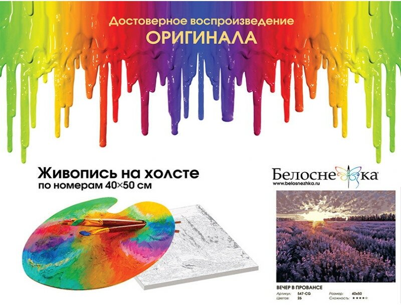 Сервис сравнения цен СкидкаГИД предлагает сравнить цены на товар «Роспись по холсту Белоснежка Вечер в Провансе 40*50см. Картина по номерам по номерам на холсте Вечер в Провансе 40х50 см»