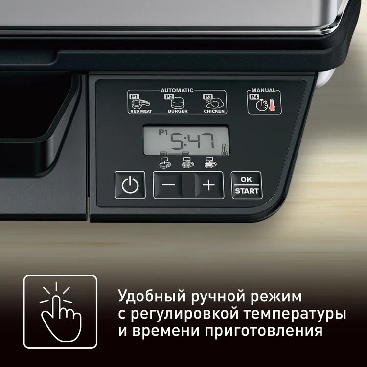 Нет книги с рецептами, как в OPTIGrill. Приходится самому экспериментировать в пользовательском режиме с температурой и временем, что не всегда удобно, особенно когда ждешь гостей и надо бы чтобы все было готово сразу. Подумываю завести книжечку для записей, а то когда хорошо все получается, потом забываешь и приходится все заново пробовать :D