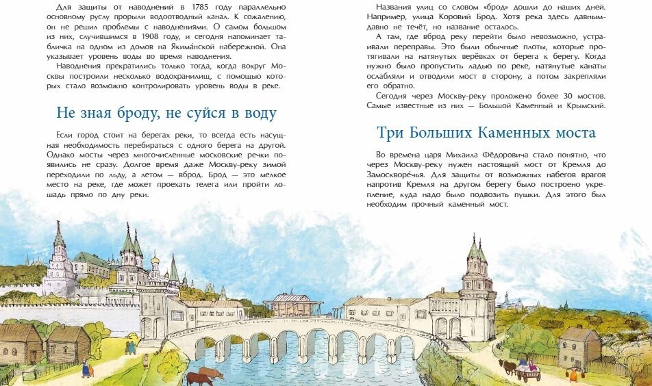 Понравилась книга тем, что в столь небольшом формате дано много разносторонней информации. Хорошо, что есть карта и можно с ребятами поизучать её. Включены пословицы и поговорки, о значении которых отдельный разговор. О мостах, о маленьких и больших реках Москвы, которых мы теперь не видим, но знаем их названия. Рекомендую