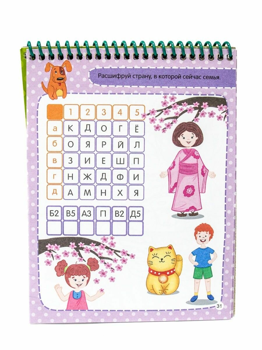 Просто отличные блокноты в этой серии: разнообразные задания с одной стороны листа, а с другой симпатичные раскраски по теме блокнота, листы плотные, формат А5 очень удобен, можно взять в поездку! В конце блокнота есть ответы на задания. У этого блокнота ещё и тема интересная, можно узнать о странах и их достопримечательностях! Рекомендую!