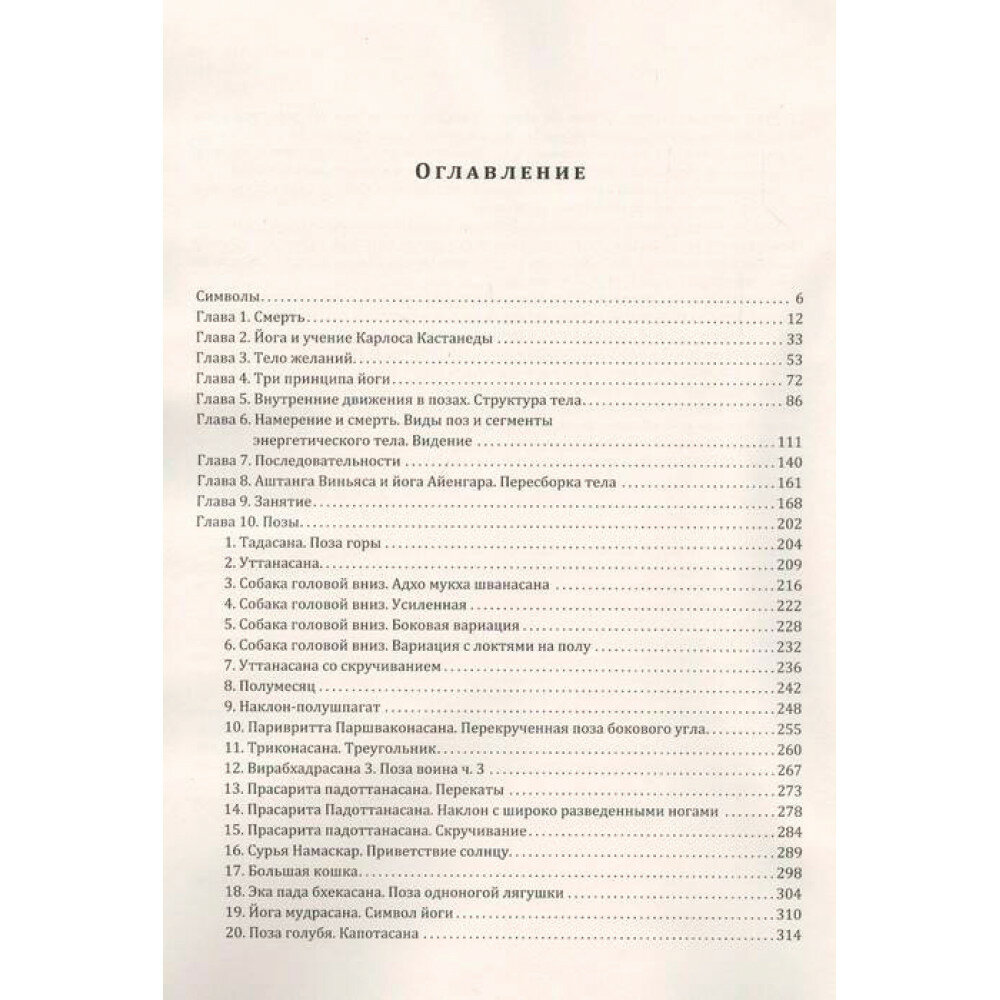 Эта книга является продолжением работ К. Кастанеды и А. П. Ксендзюка. Одновременно это полноценный учебник практики поз йоги. Автор развивает подход к обучению практике поз, заложенный Б.К.С. Айенгаром в книге «Прояснение йоги. Йога Дипика», с которой началось триумфальное шествие практики поз на Западе в 50-х годах XX века.